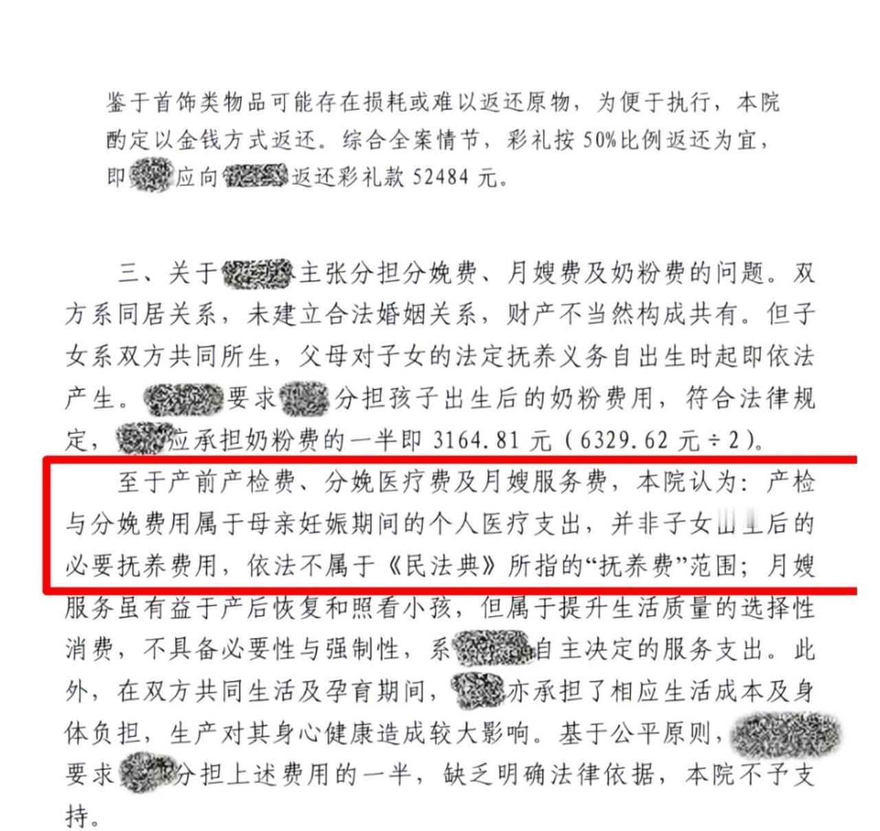 到了法院,这笔账算得很细。关于那 10 万块的彩礼和金饰,法院觉得虽然没领证,但人家毕竟一起生活了一年,还生了孩子,钱在筹备婚礼和孕期肯定有花销。最后判了女方还一半,也就是 5 万多块。