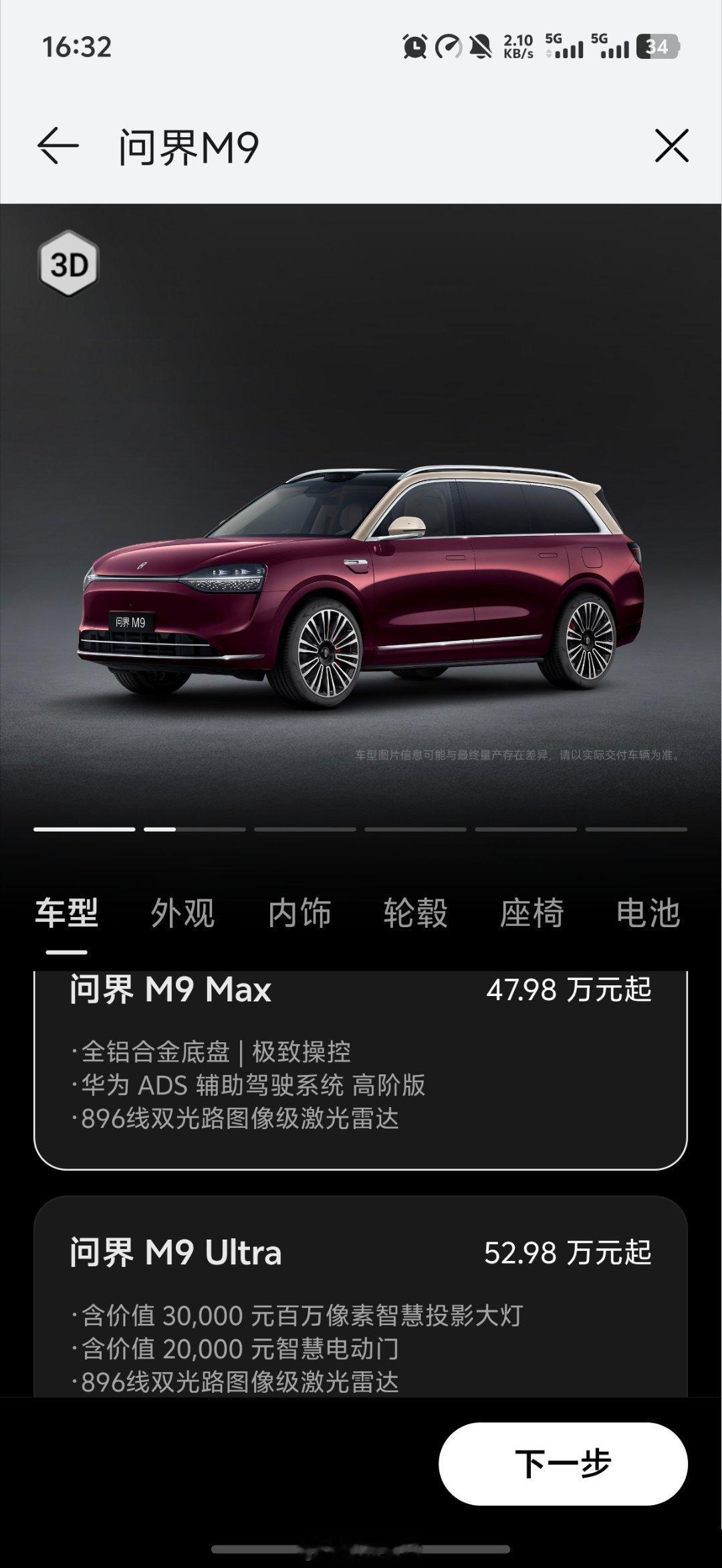 鸿蒙智行APP里都显示了,问界M9 896线“新品定购”,两个版本里也清楚写着标配。结果到了一些张嘴就喷的人嘴里,就成了选配,不是新款了?