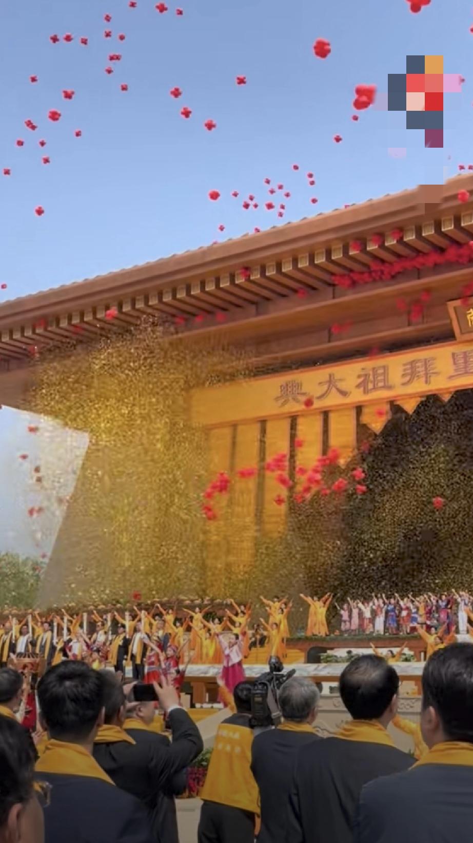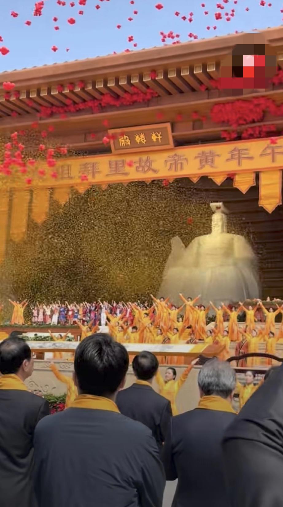 他抬头望着台上的黄帝雕像表情严肃,或许他这么大年龄更有感慨,虽然他老了,但依然保持低调的风格,不抢风头是非常明智的。