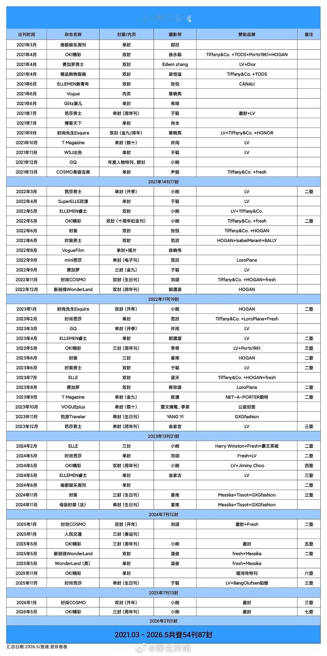 LV已经为龚俊推封20+封,2026年嘉人五月刊,五大刊准满
