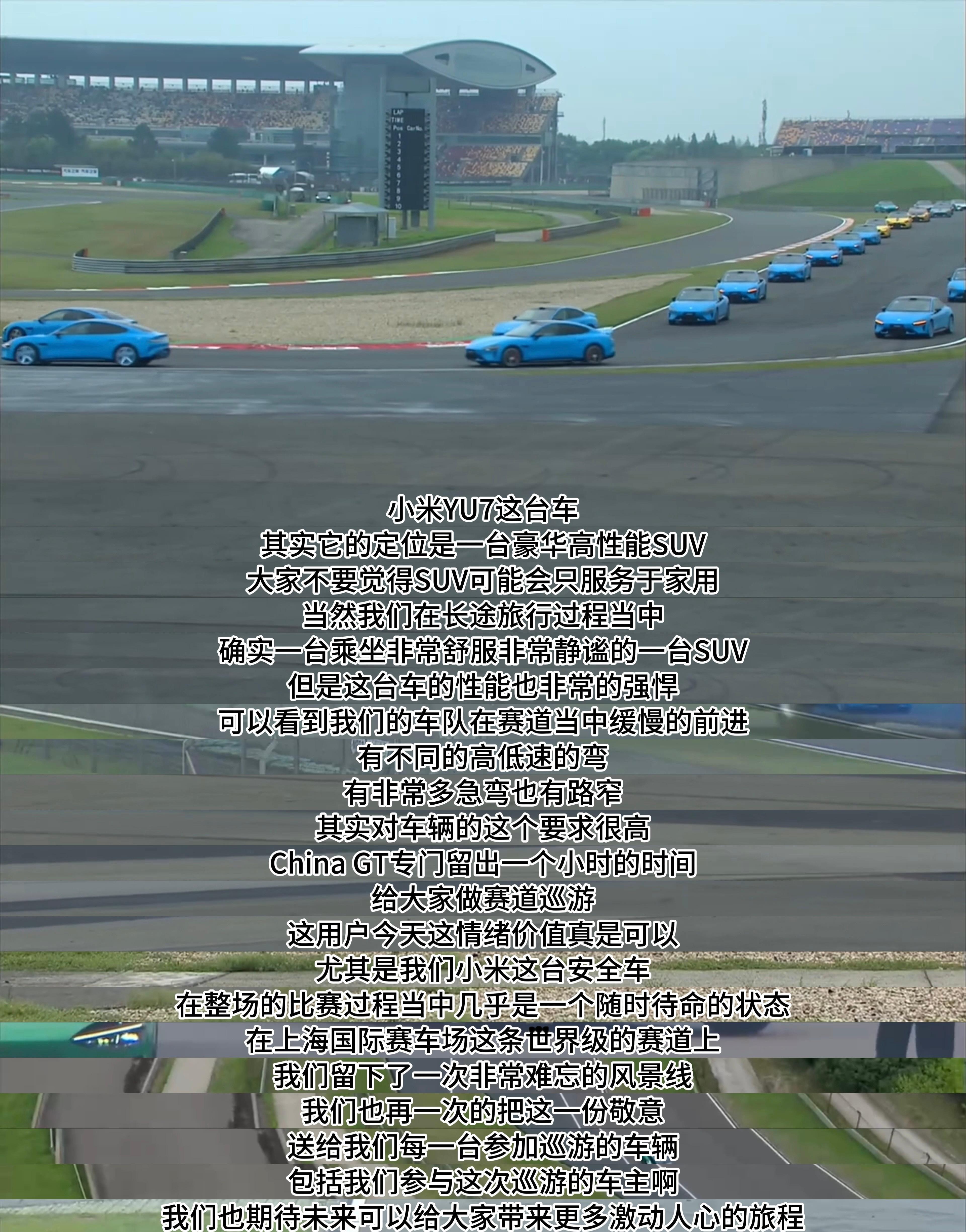 雷军现身上海国际赛车场CHINAGT赛道巡游小米汽车车型到齐今天上赛的主角,从职业车手变成了台下那群小米车主。雷总往那片卡布里蓝车阵前一站,和车主拍下大合影——这张照片的分量,比什么海报都实在。据说雷总日程满到推掉不少重要会面,但只要是车主活动,几乎次次到场,这也太宠粉了。