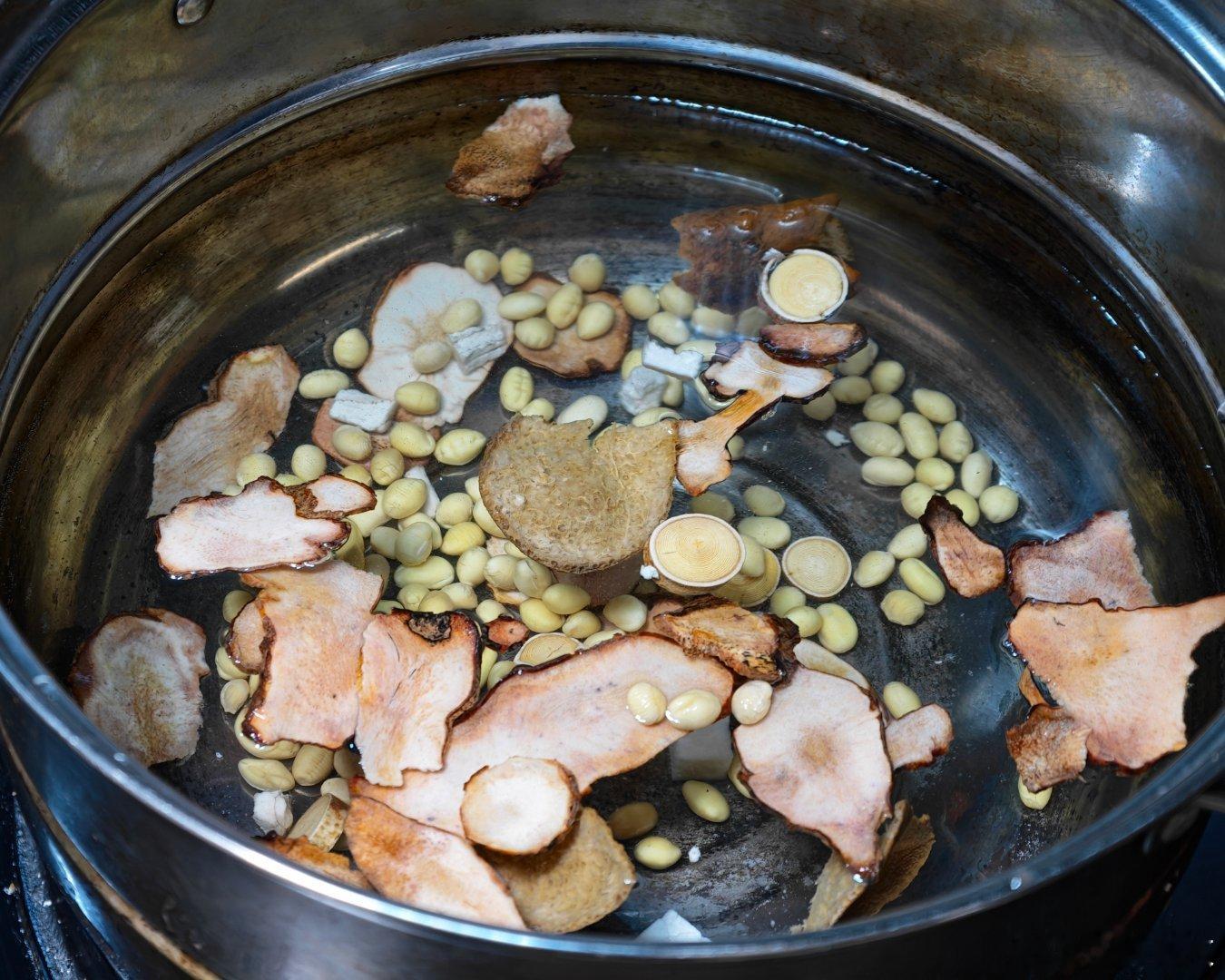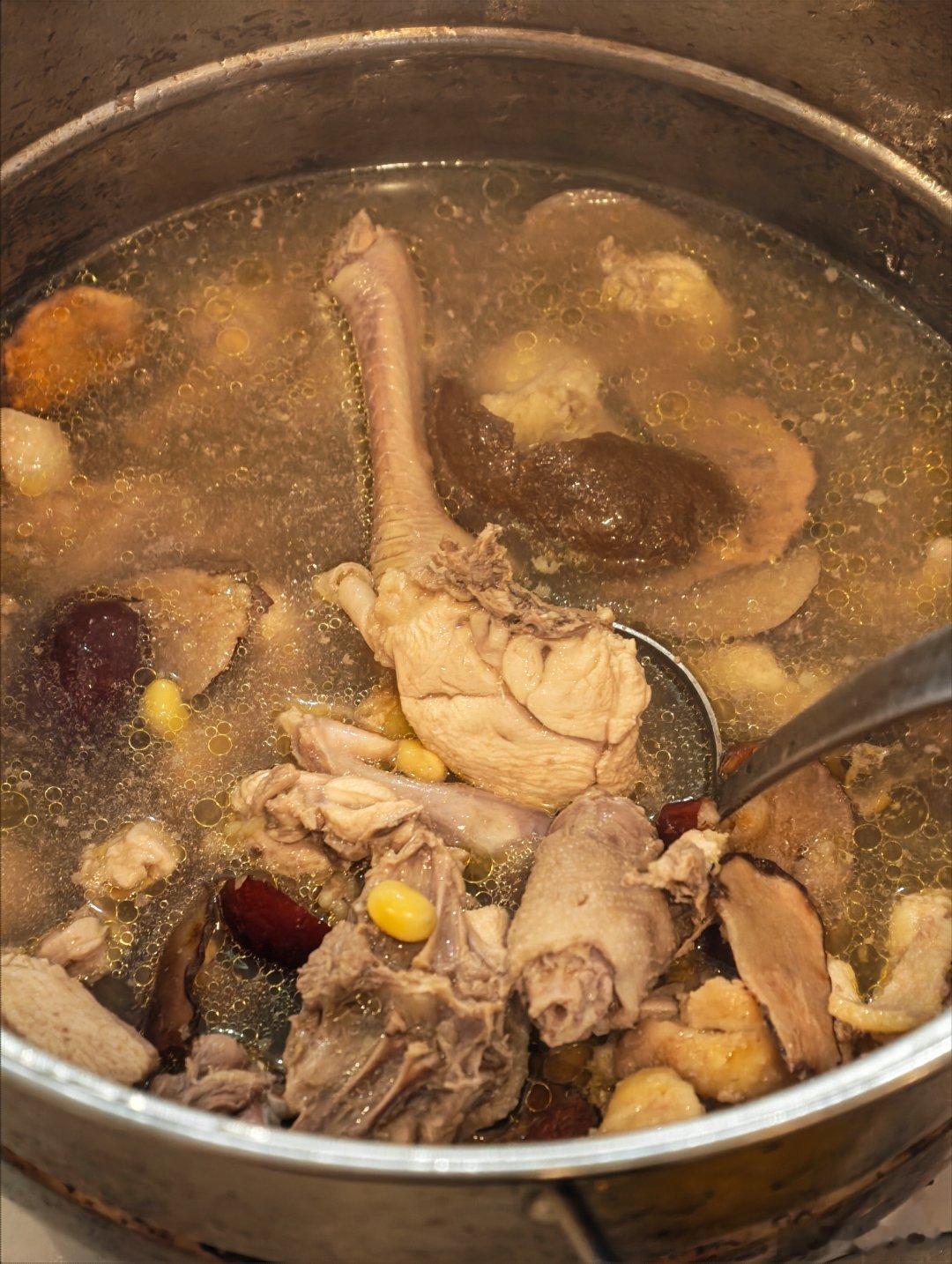 说结论,两次口感都很清甜,第一次用的温氏冰鲜的老母鸡,鸡肉煮出来有点老了;第二次用的三黄鸡,口感蛮嫩的,但我药材时间煮得不够,黄豆泡了一两个小时都没熟,以至于我似乎有点窜稀了,不知道是成功祛湿了,还是有点食物中毒,整个人有点小小的不舒服(脖子下面右侧按压有点疼痛感)