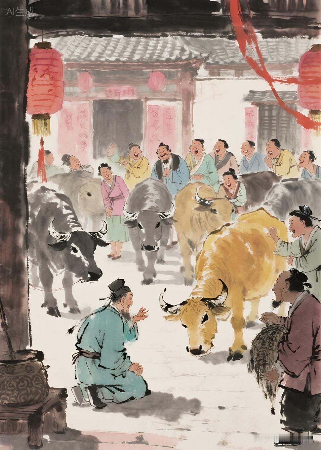 后王参军家有客人来,也戏呼:“王斋公!”那牛也会跑过来下跪磕头,逗的客人开怀大笑。王参军家把这当成了家中的一个保留节目。