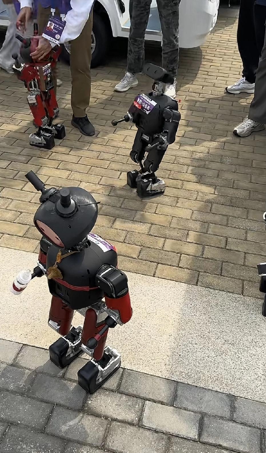 几个萌萌哒的小鼻嘎机器人,聚集在一起,互相在玩耍,所以的动作,真的像极了小婴儿,