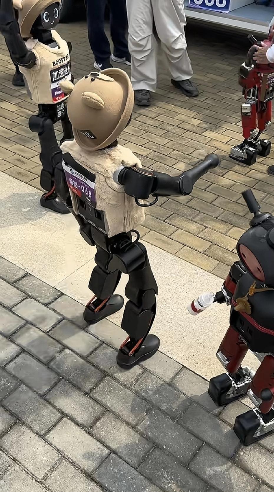 几个萌萌哒的小鼻嘎机器人,聚集在一起,互相在玩耍,所以的动作,真的像极了小婴儿,让人觉得可爱。