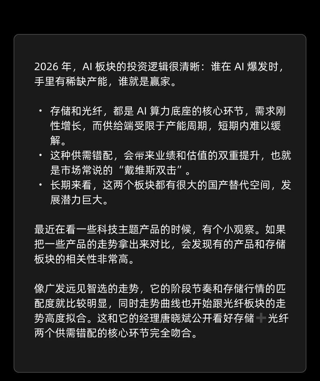 2026 AI潜力板块:存储与光纤,算力底座的核心机遇