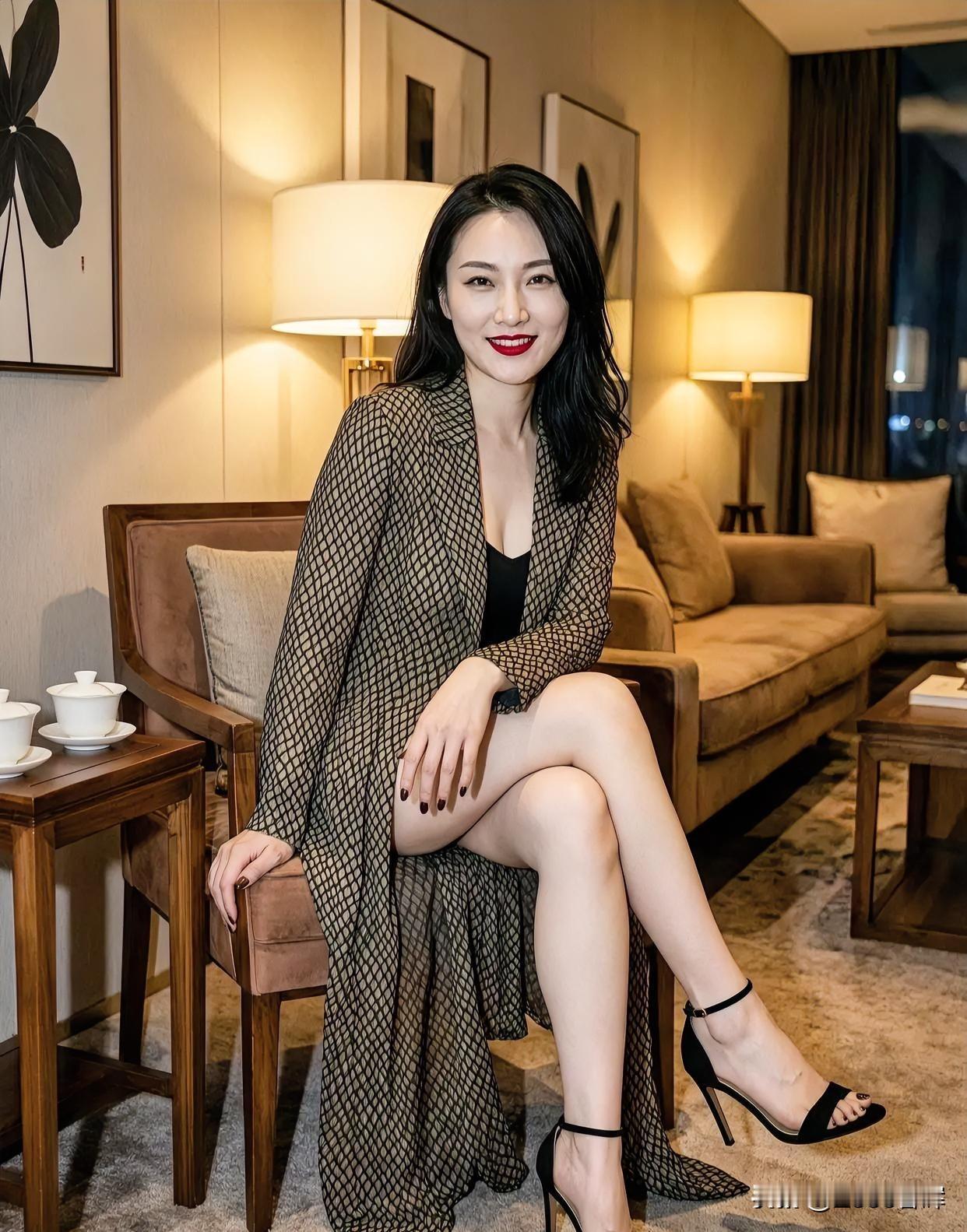 网纱疏影,透出从容。 格纹叠韵,藏锋于柔。 茶烟袅袅,心随境安。 高跟轻点