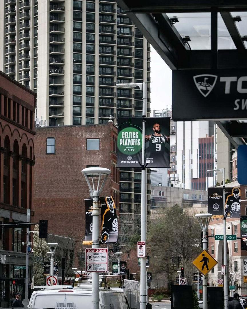 篮天下 波士顿的街头,一起迎接季后赛的到来💚