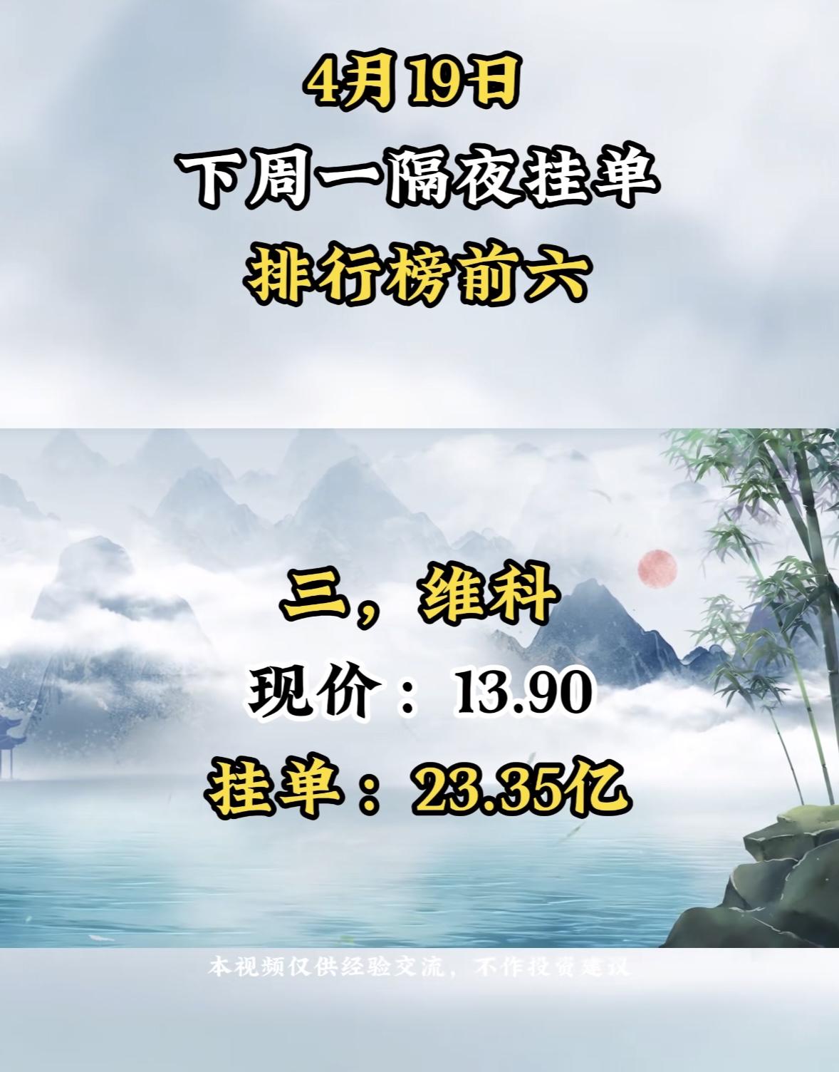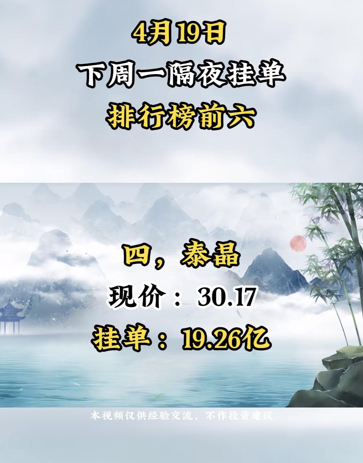 4月20日周一暗盘隔夜挂单排行榜出炉