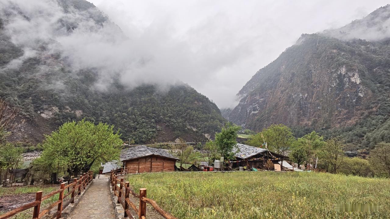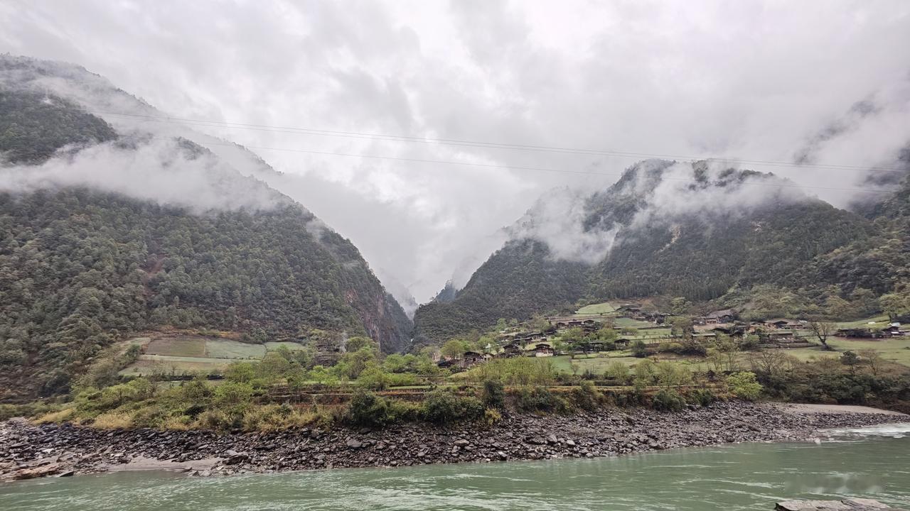 ​​继续前行,江对岸小村落静静伫立,这便是雾里村。这座藏在怒江峡谷深处的古村,是茶马古道上的遗世明珠,村里藏、怒、傈僳等民族世代聚居,木屋依山而建,炊烟袅袅,四周青山环抱,江水相依,古朴又静谧。云雾缭绕间,村落若隐若现,宛如世外桃源。昨天下了雨,路上还有点儿泥泞,我们从吊桥进了村,但进去感觉啥也没有。什么这个之家,那个之家,都不过是农户而已。这种村庄只能远观。