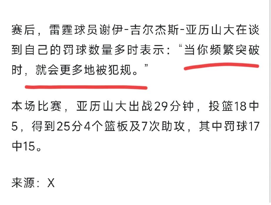 18投5中还能得到25分!罚历山大今天赛后给大家科普为什么他罚球多:突破多了就会被犯规。今天战胜太阳的比赛罚历山大出战29分钟,手感冰凉,投篮18投只命中了5球,但是全场得到25分4个篮板及7次助攻,因为罚历山大获得了17次罚球,并且命中了15个,25+轻松到手!