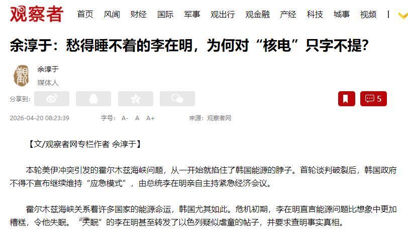 中东打仗,霍尔木兹海峡关得差不多了,韩国的能源被人卡了脖子。他自己都说,能源问题比想象中还糟,糟到失眠。