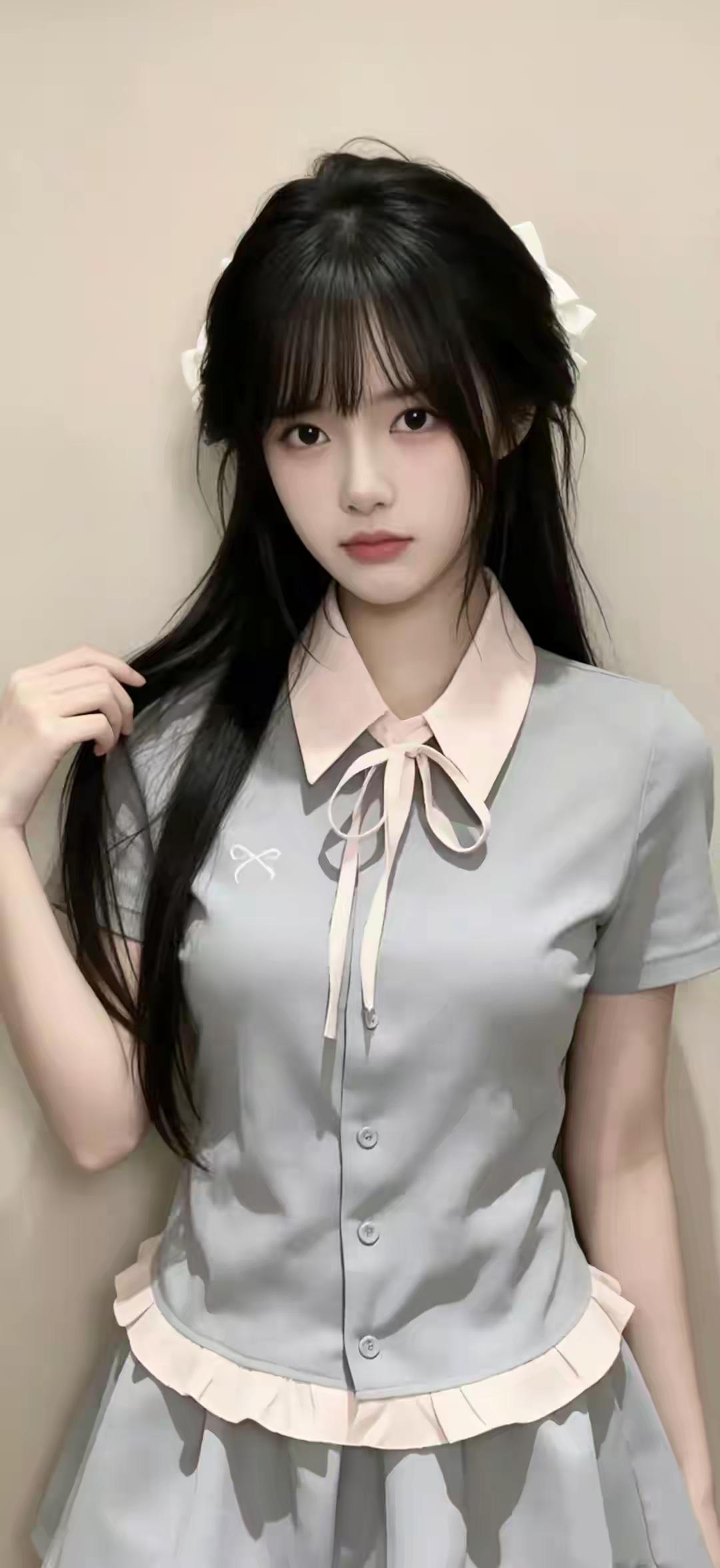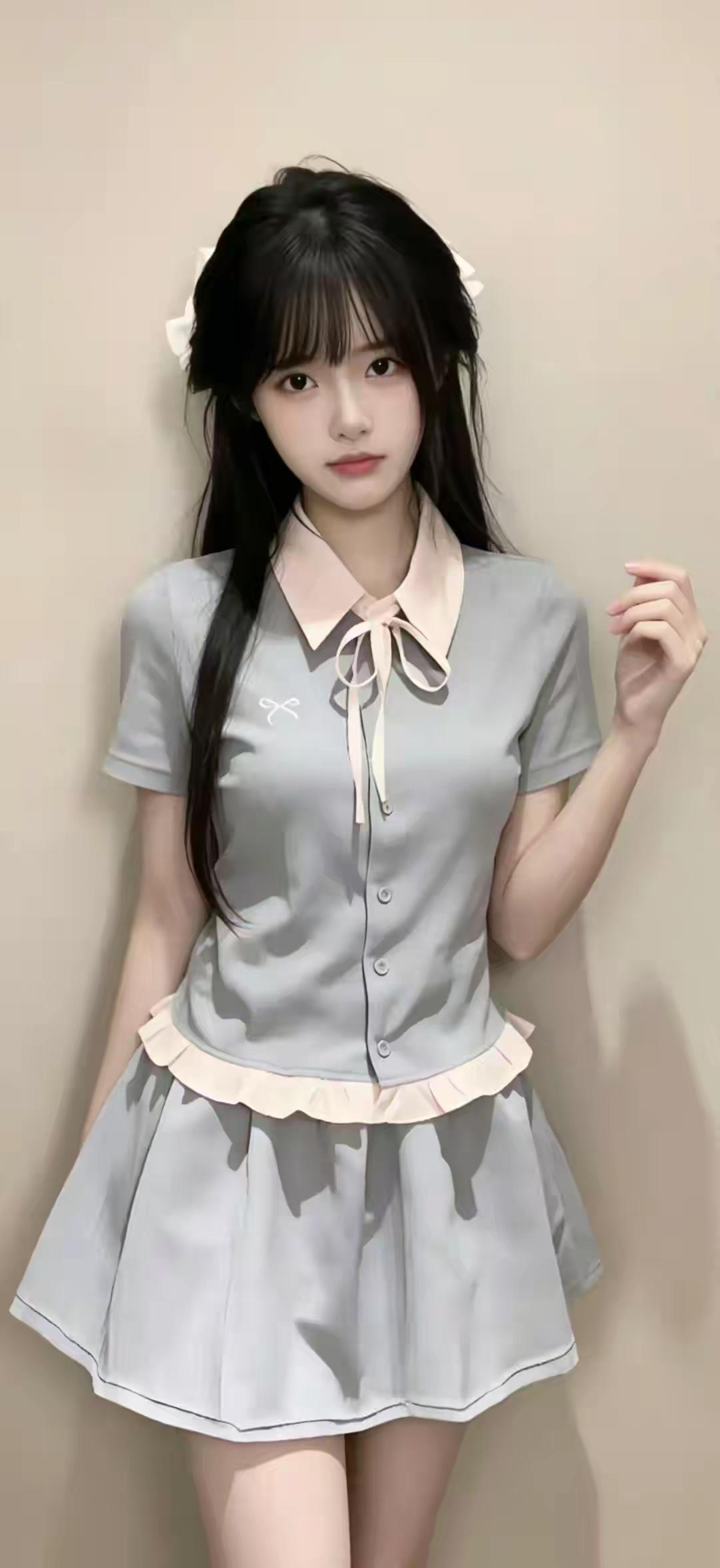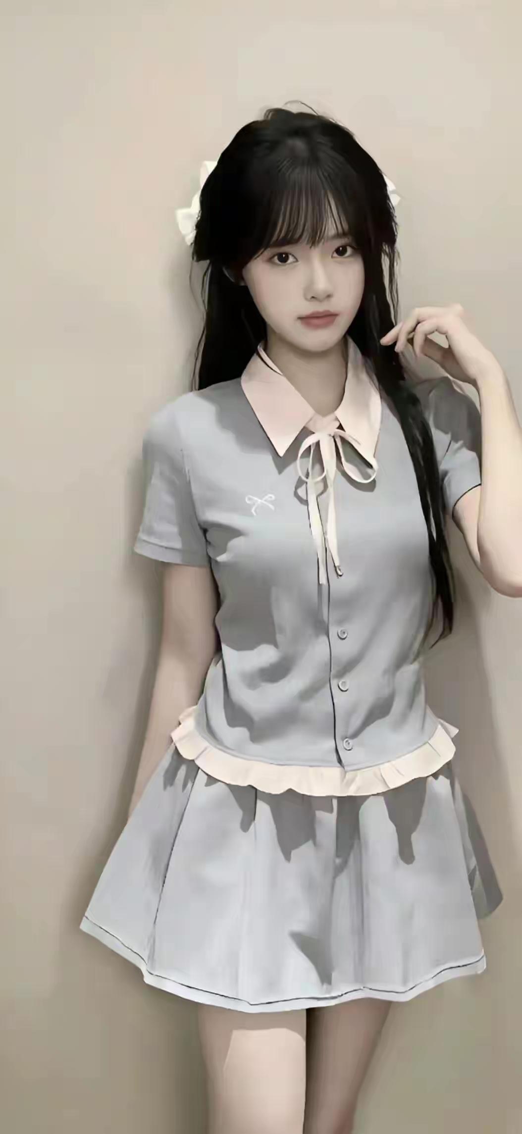 灰粉撞色是我的春日暗号,今天是甜度超标の学院少女✨ ​  把温柔穿在身上,发饰一