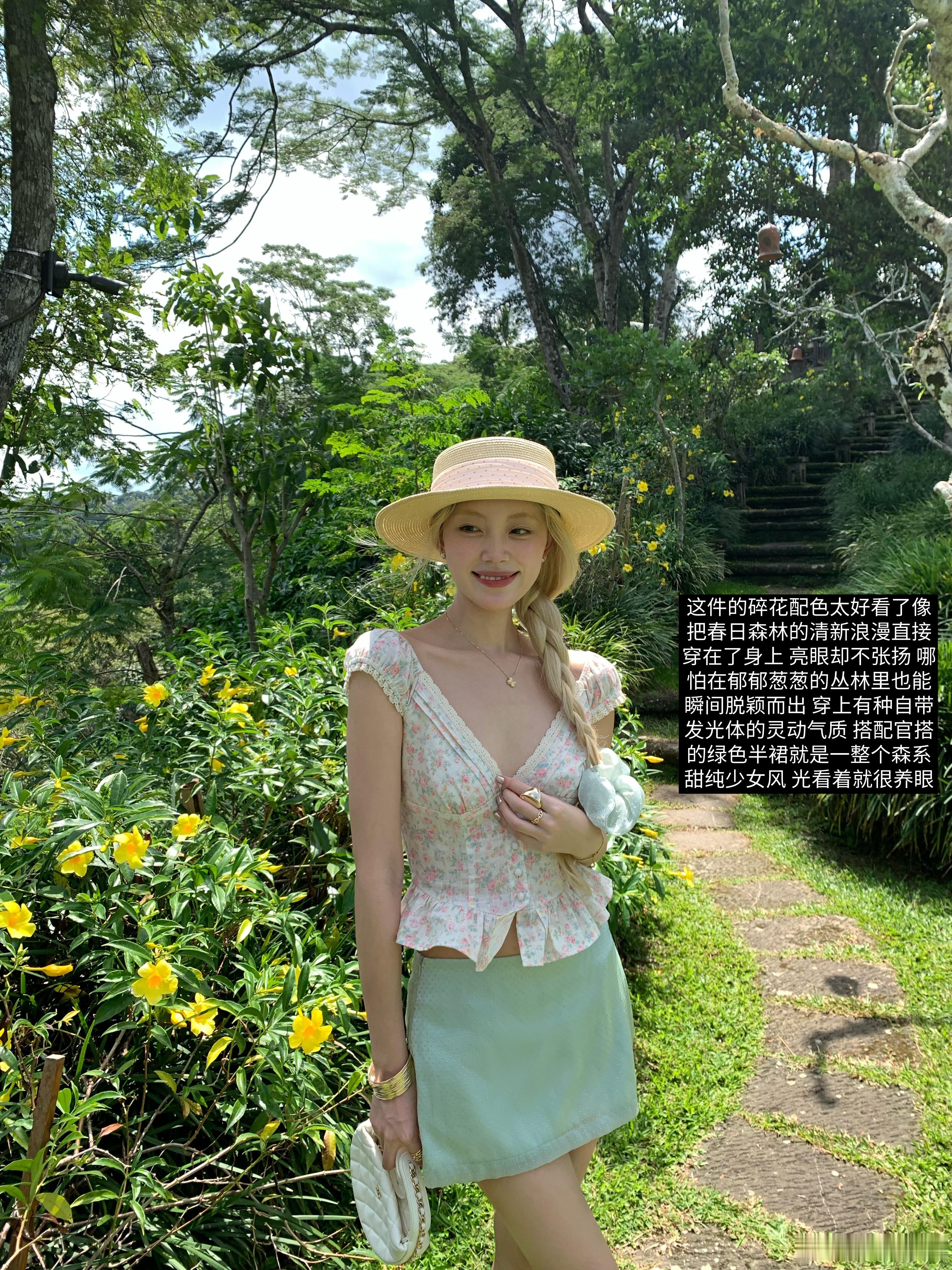 仙气飘飘的蓝绿色长裙,置身云雾缭绕的山间,宛如仙女下凡。