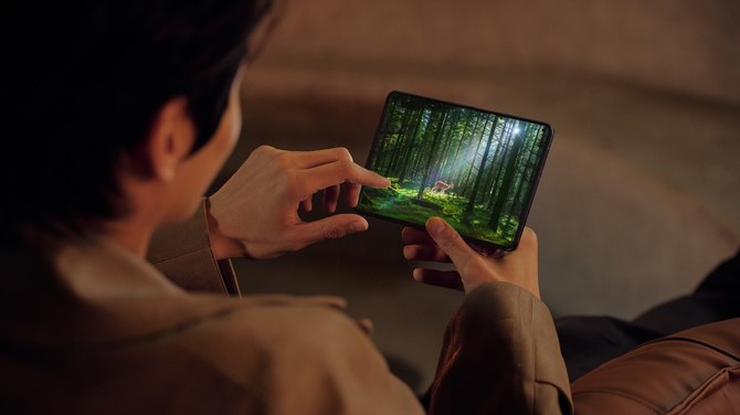 华为PuraXMax的一大突出亮点,便是全球首创双面阔型屏设计,其内屏尺寸来到7.7英寸,堪比mini平板的大内屏,为观影、阅读、游戏等场景带来更具沉浸感的视觉体验。横屏观看传统16:9比例电影,可有效收窄黑边,提升画面有效显示区域;阅读文本能够呈现更密集的文字内容,显著提升阅读效率;竖屏播放当下流行的竖版短视频,画面更舒展、观感更舒适。