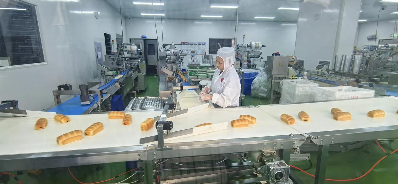 在重庆参观了乐贝鲜食品公司,流水线生产面包。很好吃。[赞]