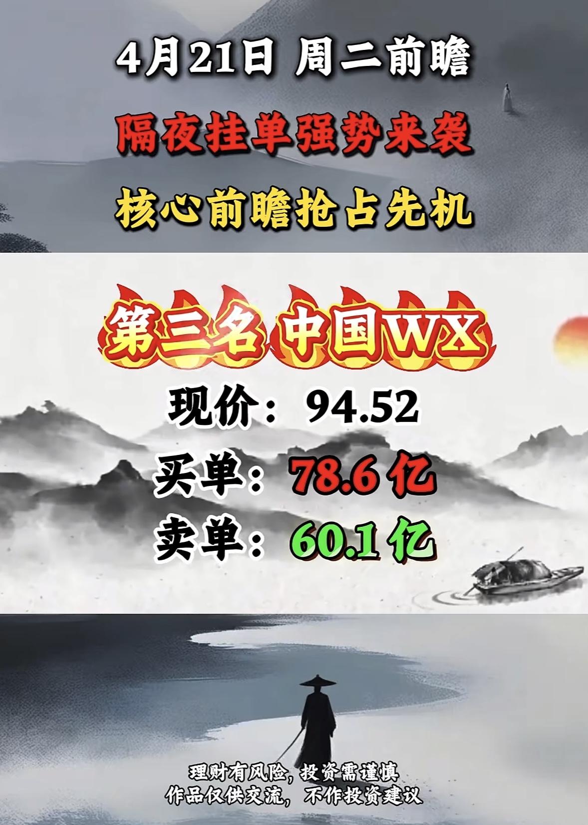 4月21日周二暗盘隔夜挂单排行榜揭晓