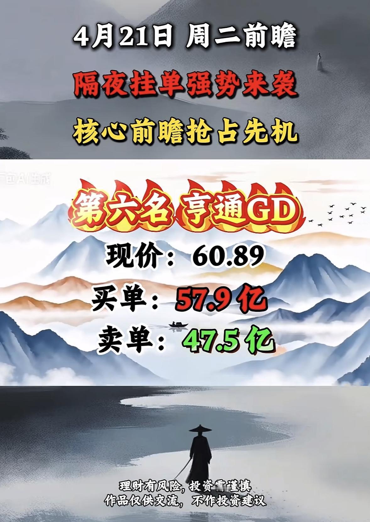 投资中,隔夜挂单是个抢占先机的利器。清明小长假前,A股市场进入关键博弈期,大资金通过隔夜挂单提前埋伏,锁定低位筹码。4月7日,6只个股出现可观隔夜挂单,覆盖农业、医药等多个热门赛道,累计超370亿资金关注。
