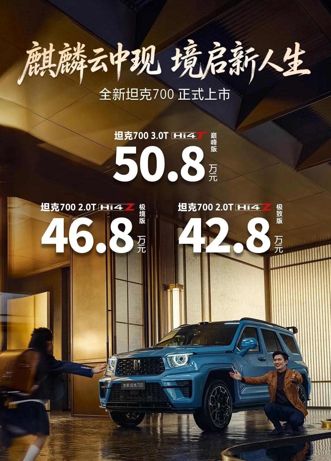 新款坦克700终于上市,三款车型42.8-50.8万,对比老款升级太狠!纯电续航