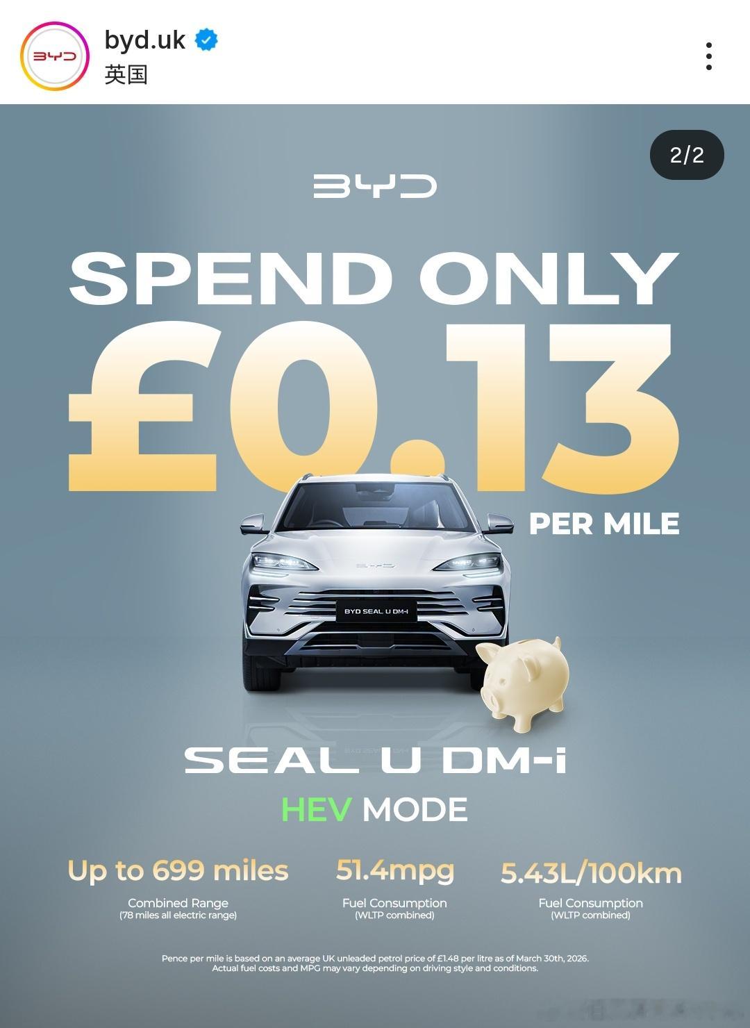 BYD UK这个能源花费海报很直观啊,贴脸打高油价大v聊车