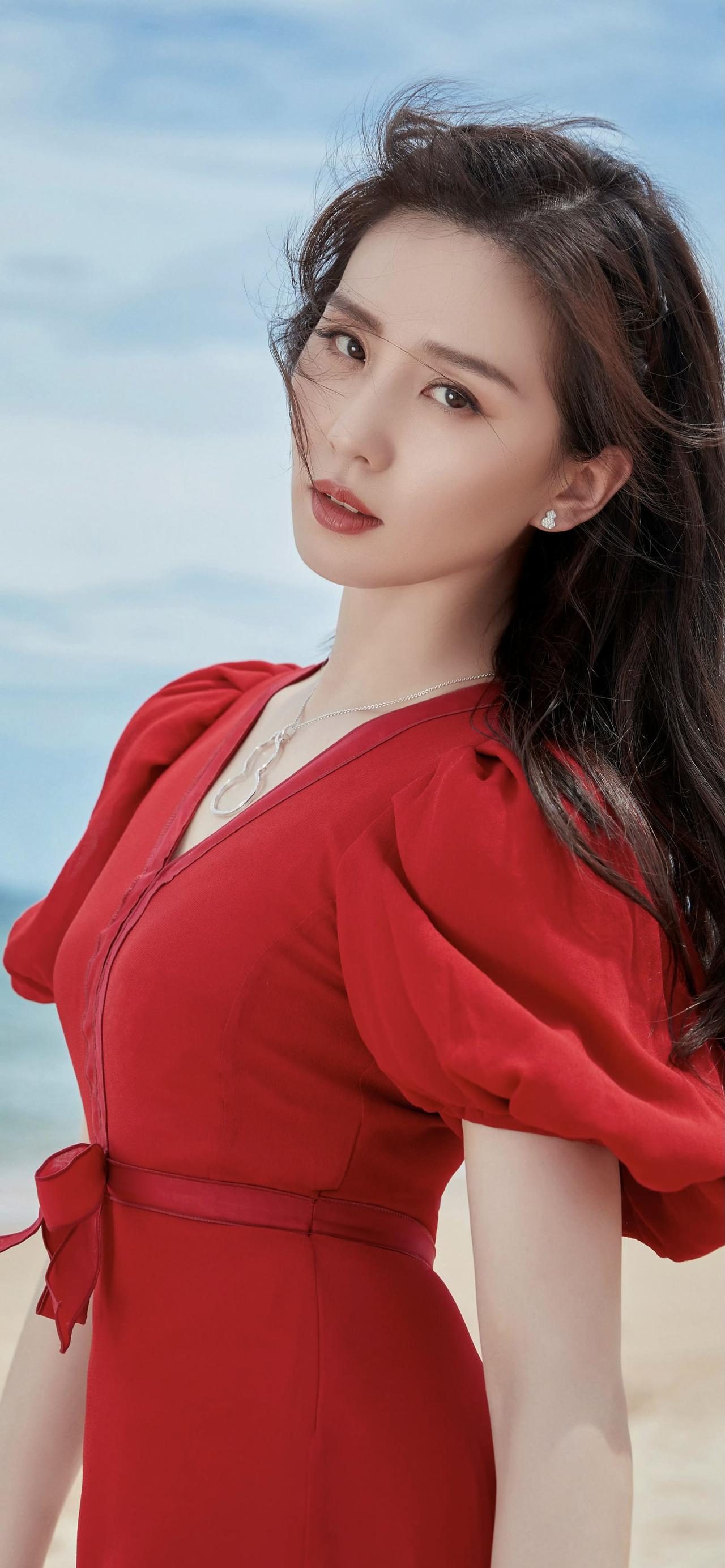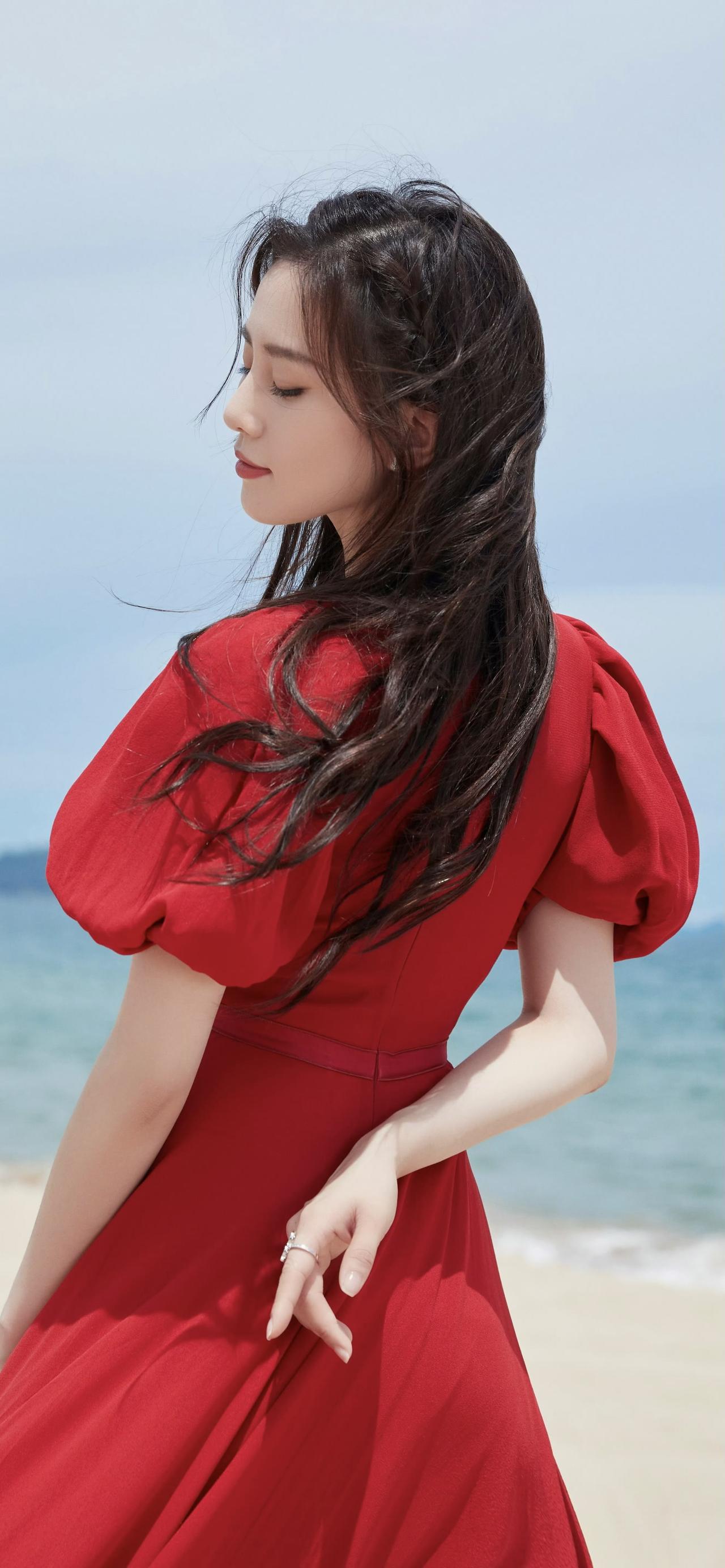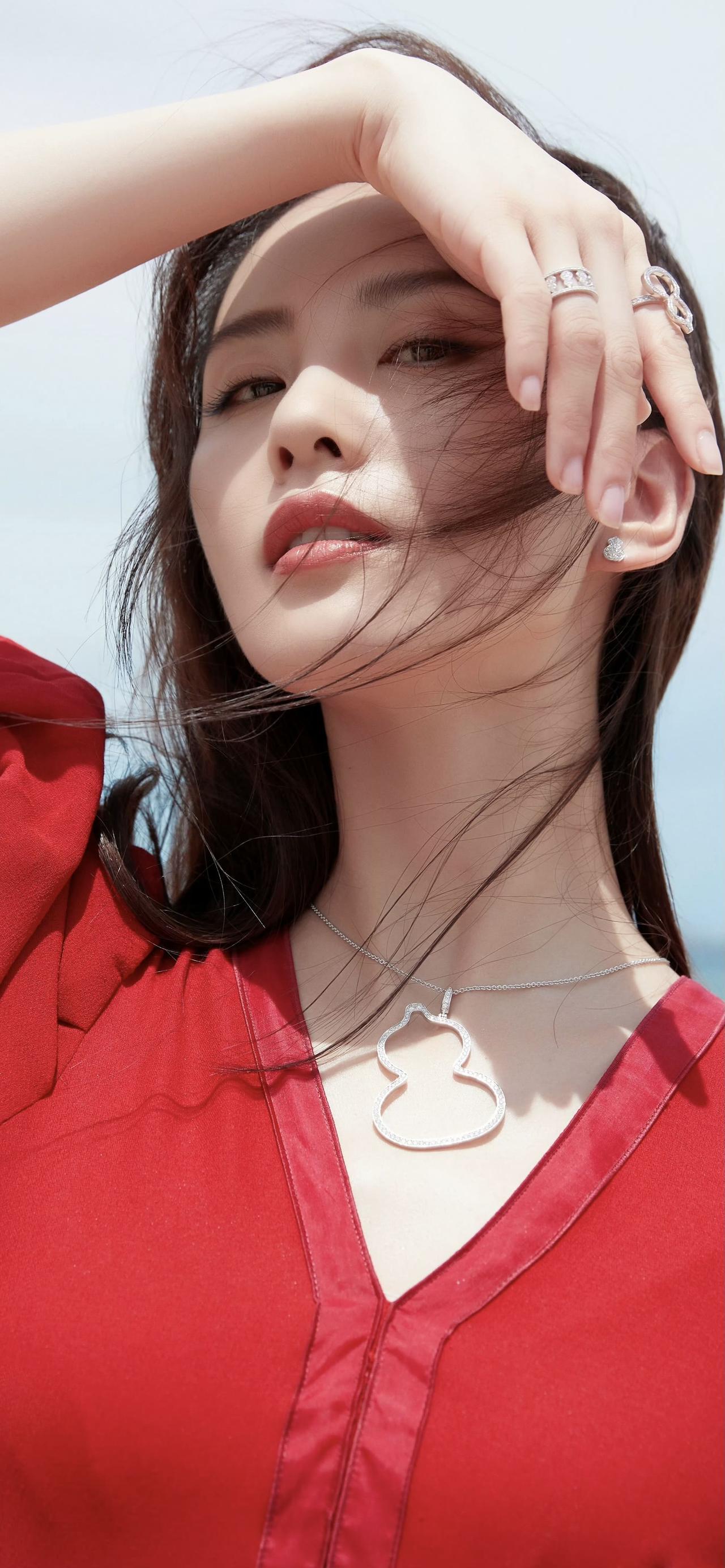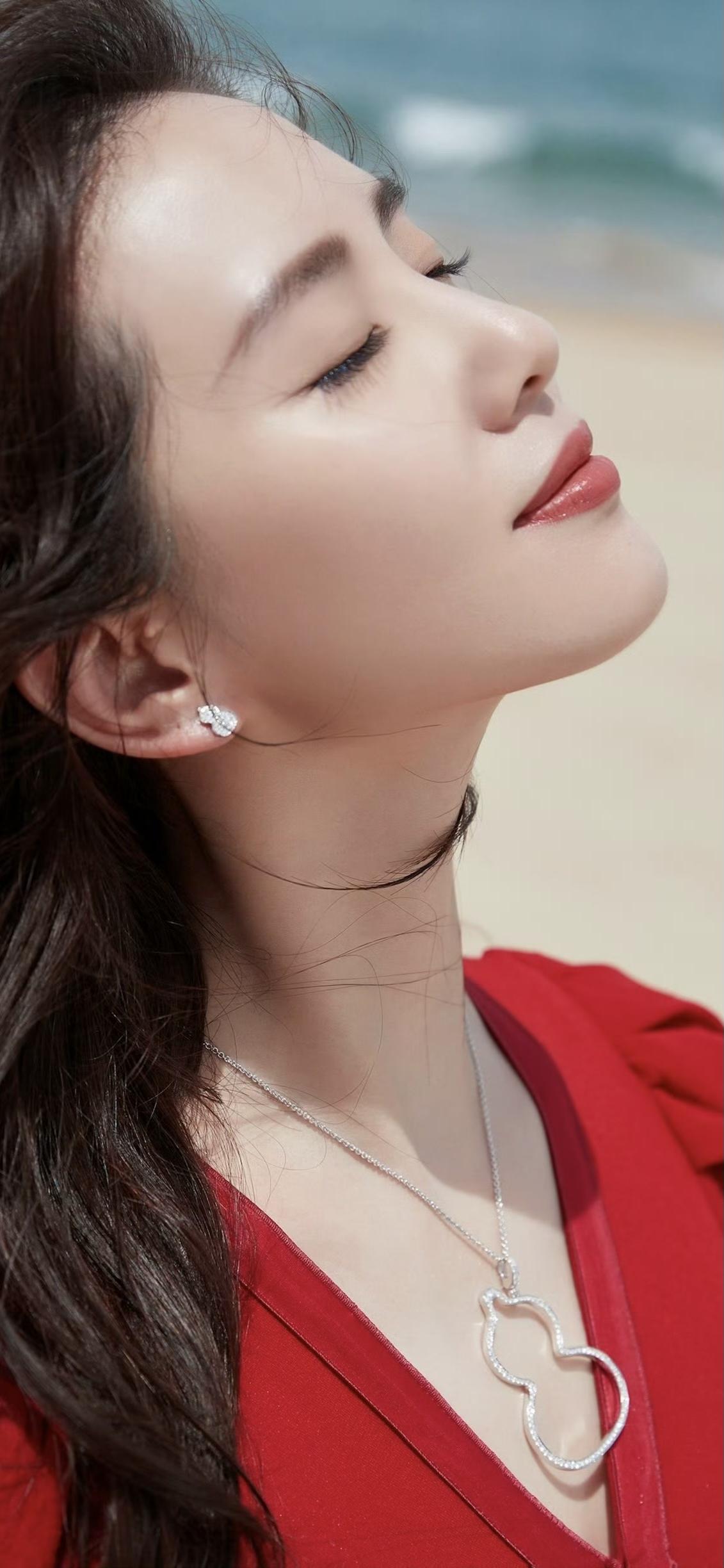 美女壁纸~刘亦菲,热烈的红大衣裹住清冷氛围感。刘亦菲露肩黑裙衬出优越肩颈,颈间耳