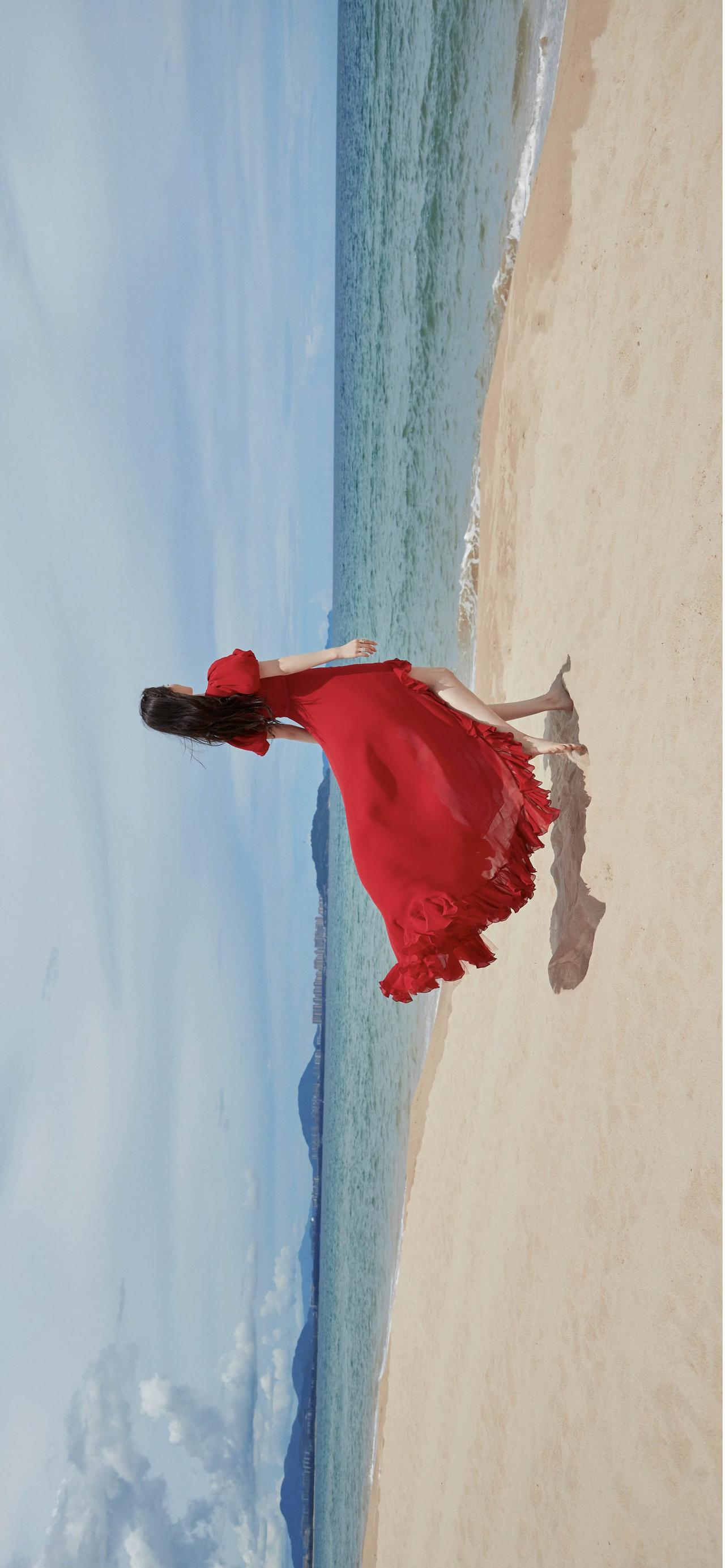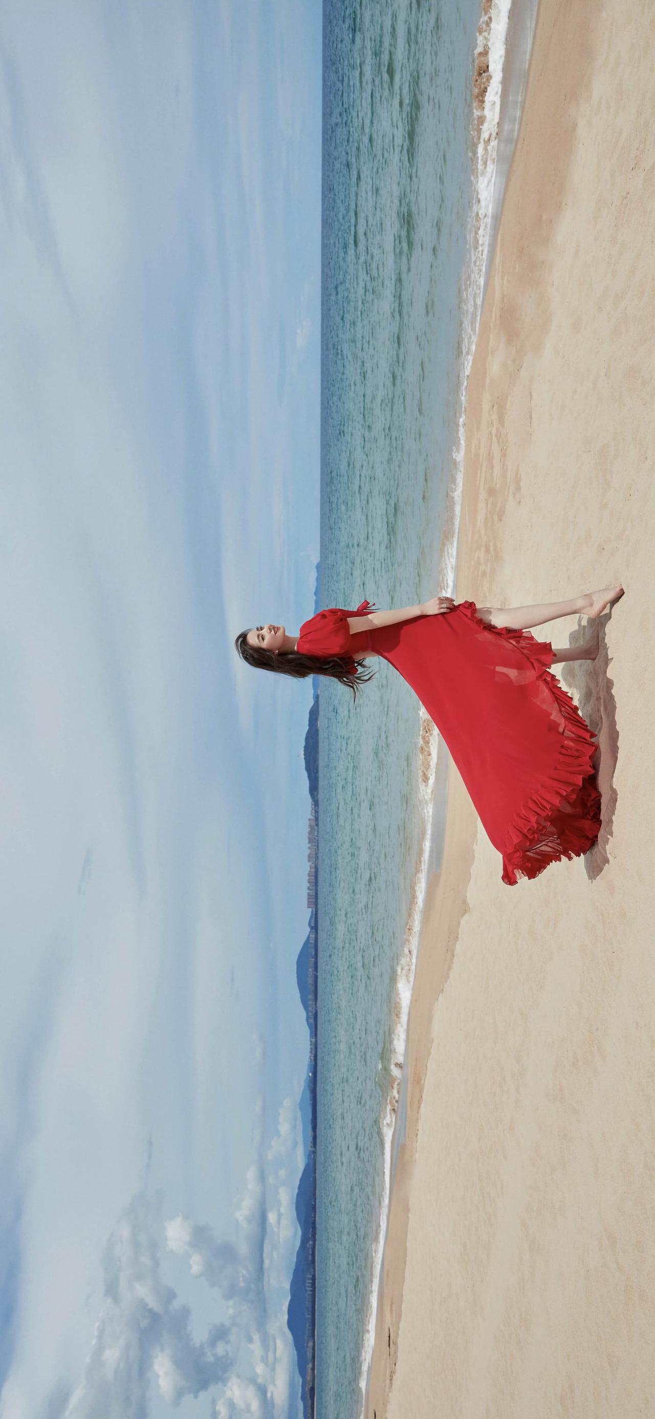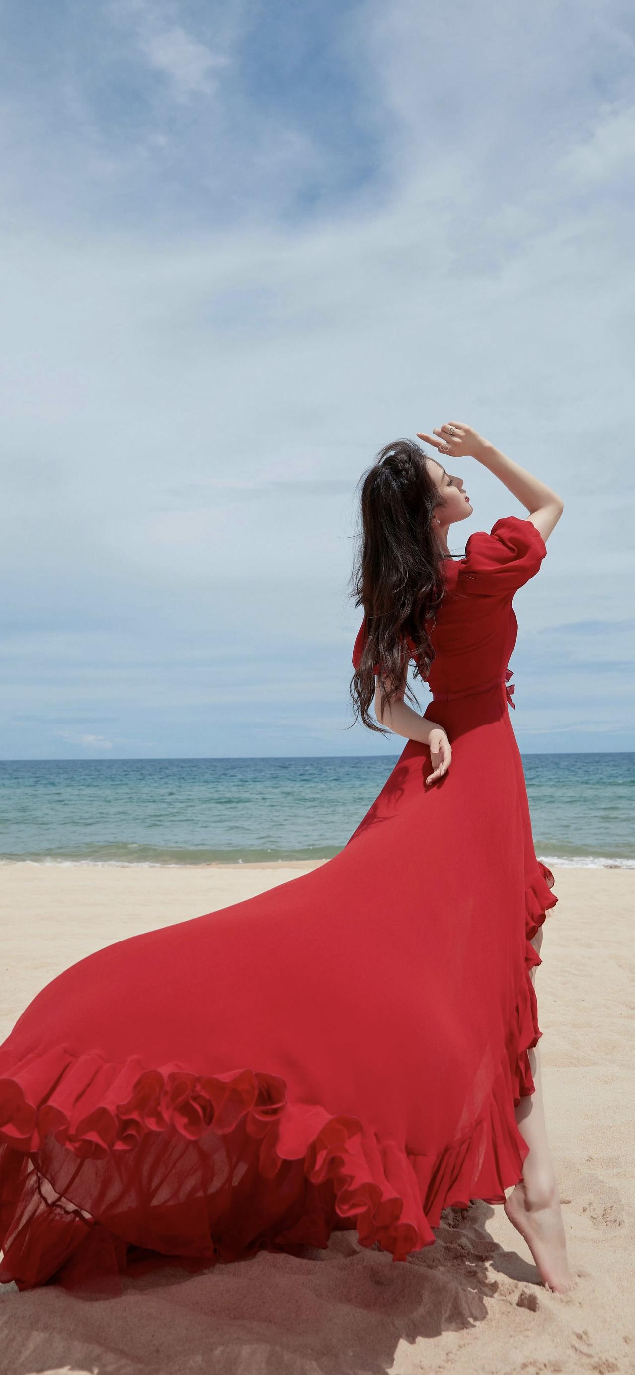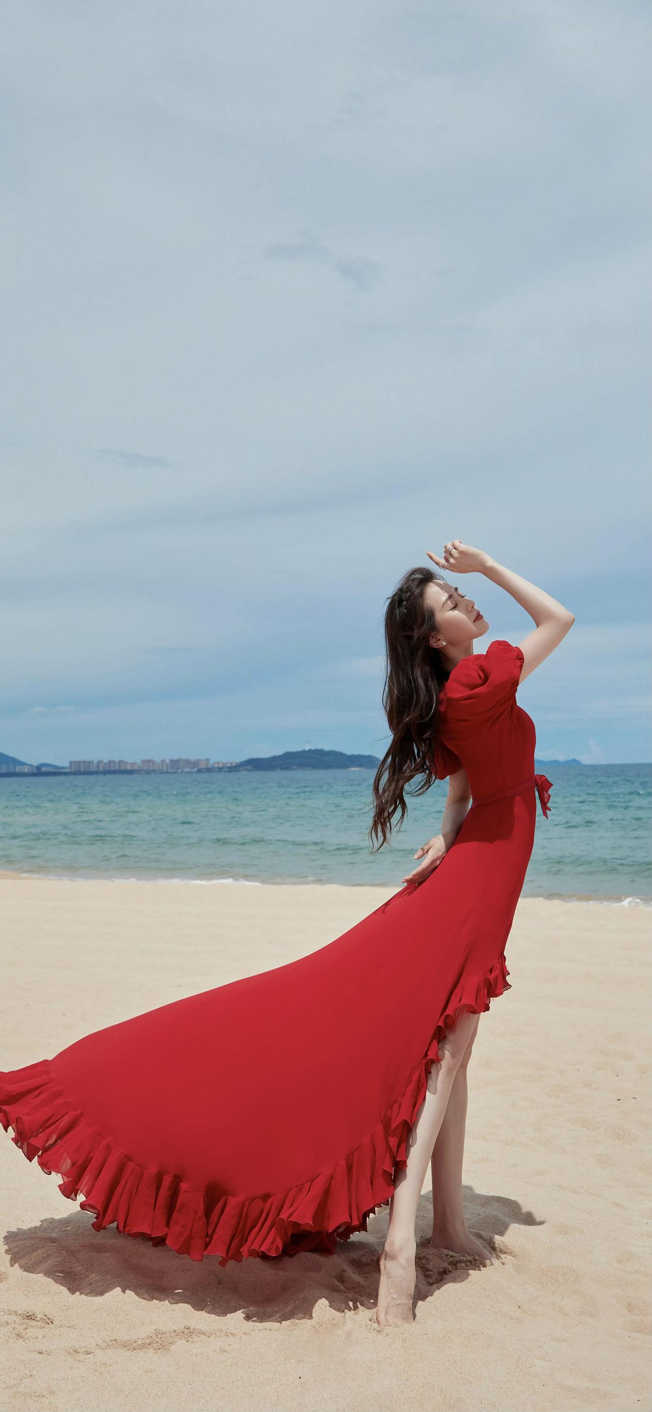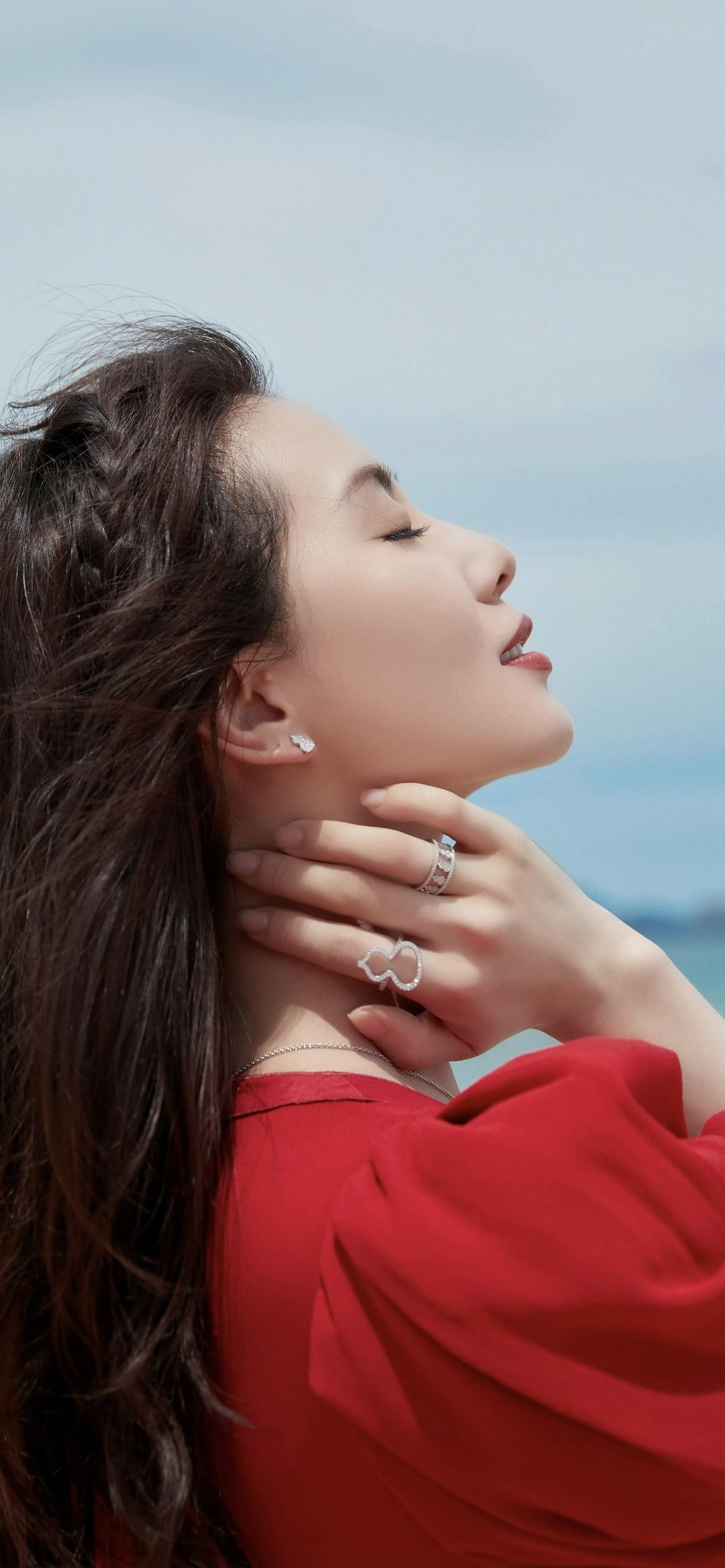 美女壁纸~刘亦菲,热烈的红大衣裹住清冷氛围感。刘亦菲露肩黑裙衬出优越肩颈,颈间耳