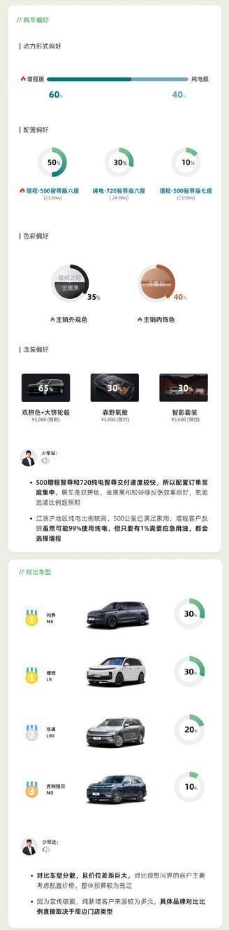 4.竞品对比:10个里面3个对比问界M8、3个理想L9、2个乐道L90、1个吉利银河M9