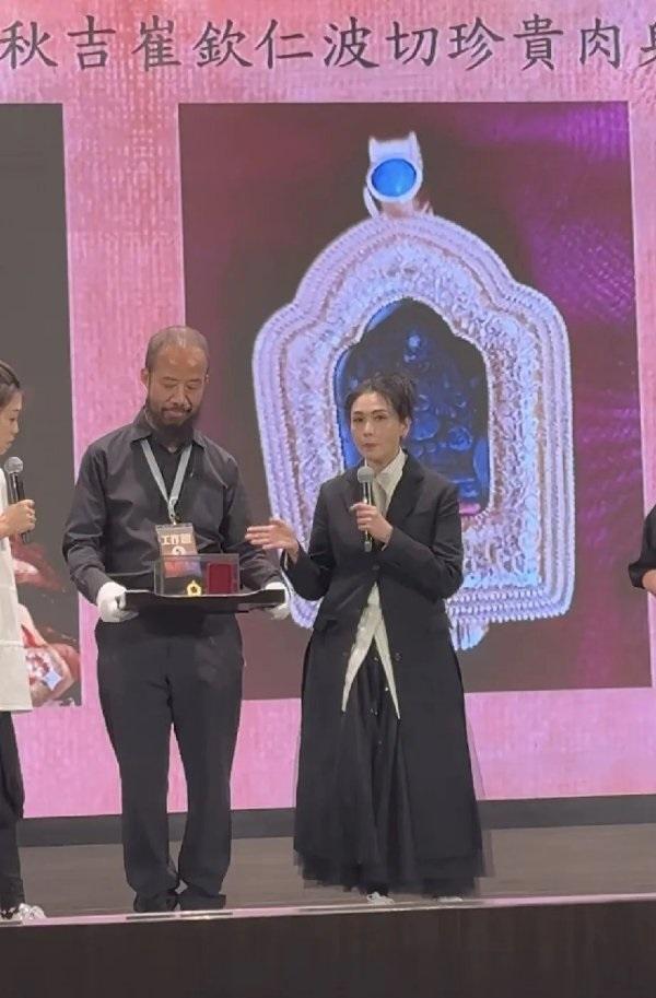 邱淑贞特意把头发挽了起来,像个靓丽的美少女。