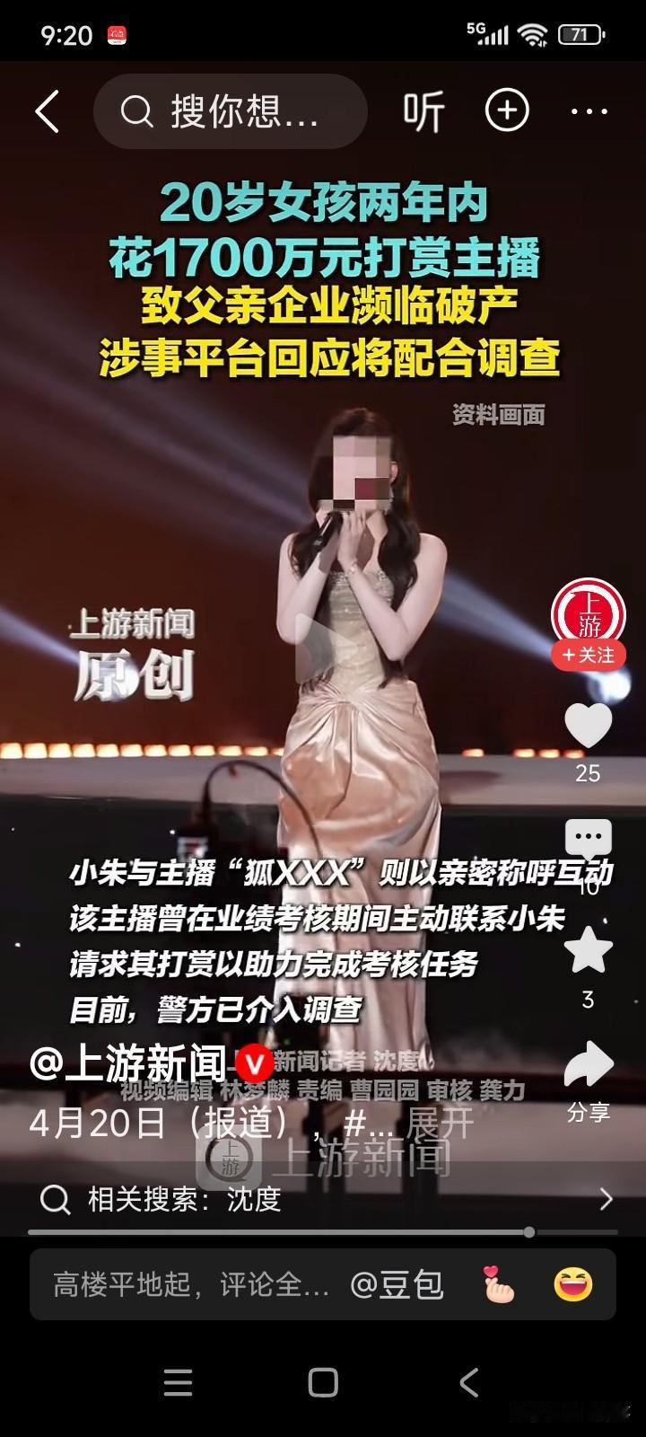 又过了一阵,男子再次核对账目,发现公司账上的1700万不翼而飞。他问女儿怎么回事,女儿坦言拿公司账上的1700万打赏了男主播。