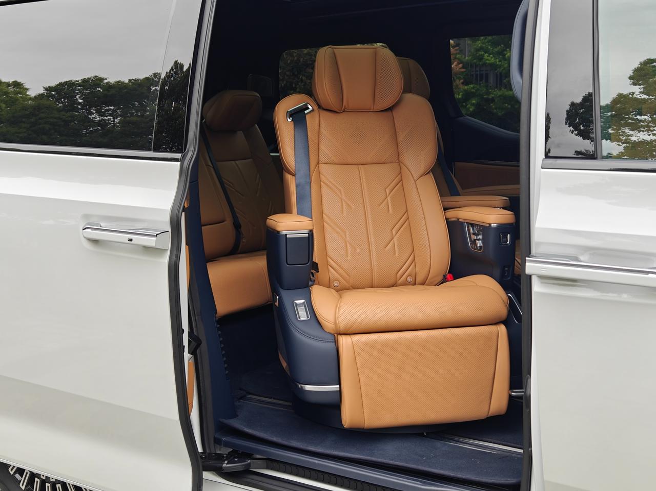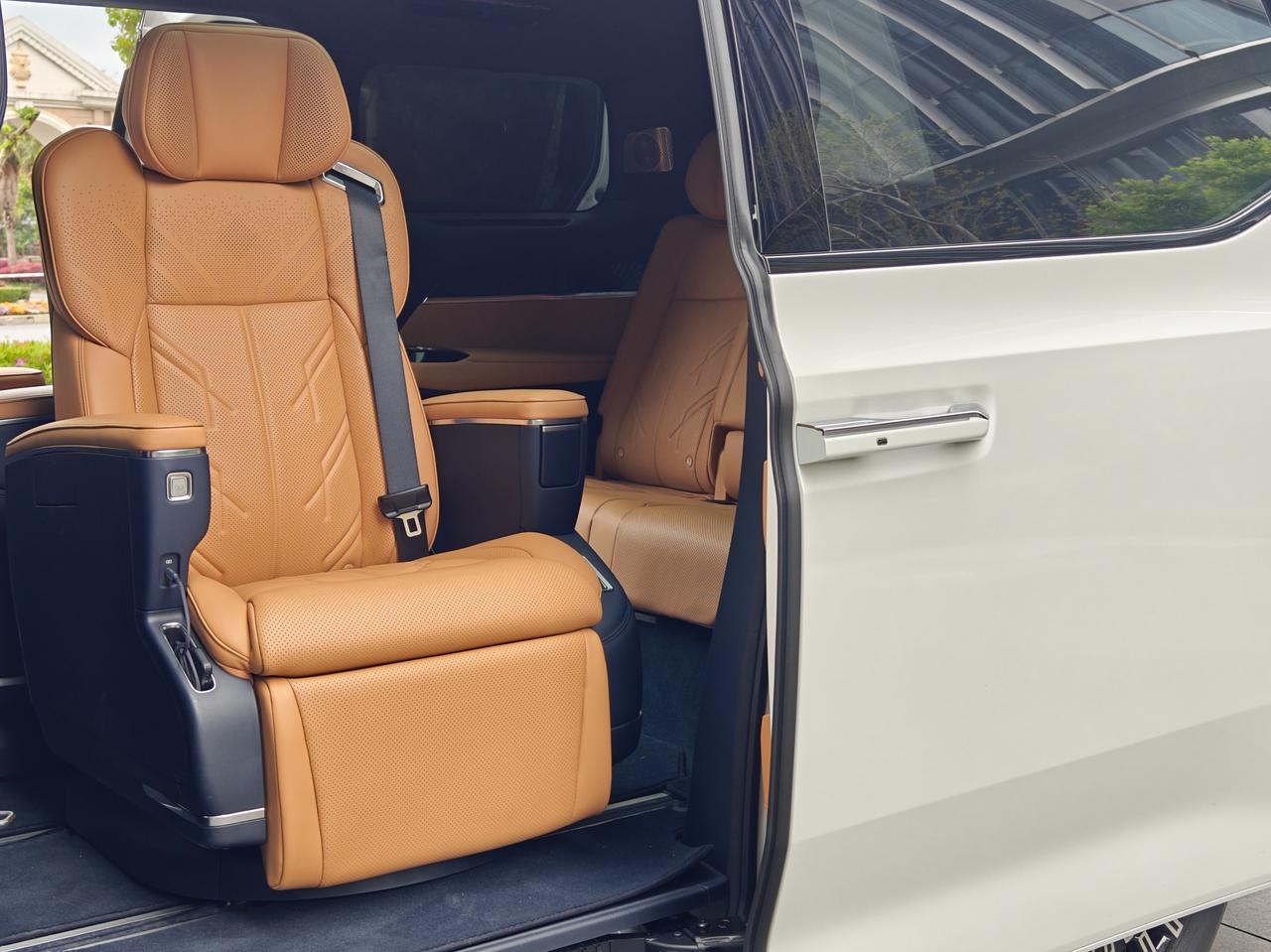 旋转座椅目前是7座版独占,毕竟6座版几乎没有过道,也就没法给旋转腾出空间。