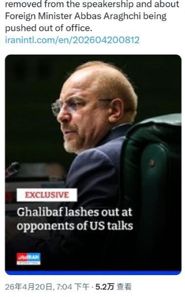 加利巴夫作为伊朗议会议长,还亲自主导了伊朗与美国的最新一轮谈判,他能说出这番严厉批评的话,绝非一时冲动,更不是空口无凭,背后全是伊朗国内两派势力的激烈拉扯。