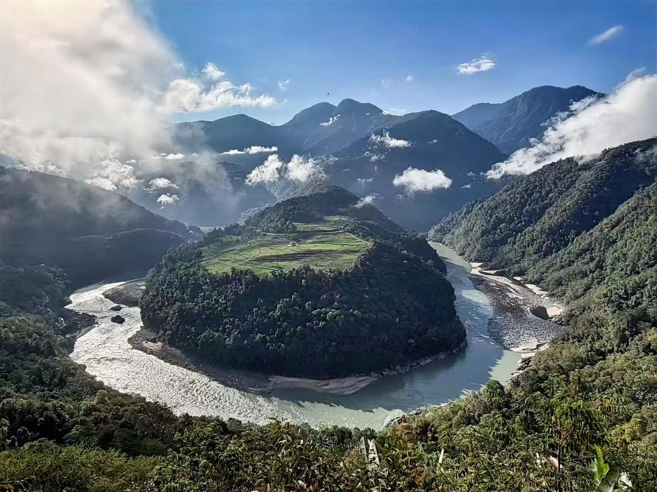 云雾缭绕的青山绿水,大自然的鬼斧神工!哇,太美了,像画一样。碧水映蓝天,仙境落人