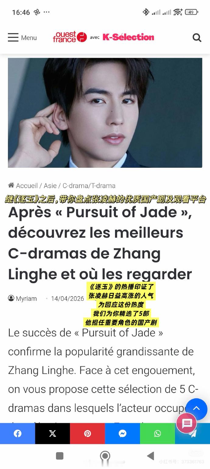 全球发行量最大的法语报纸、法国付费日报发行量第一的《法兰西西部报》,近日为张凌赫专门设立专题进行安利,并称他为“席卷法国的中国新晋巨星”!