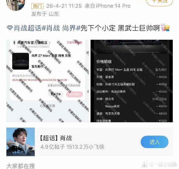 小飞侠们还是太有实力了,肖战尚界代言人刚刚预热,这还没官宣,广场是全是粉丝小订晒单了肖战 尚界