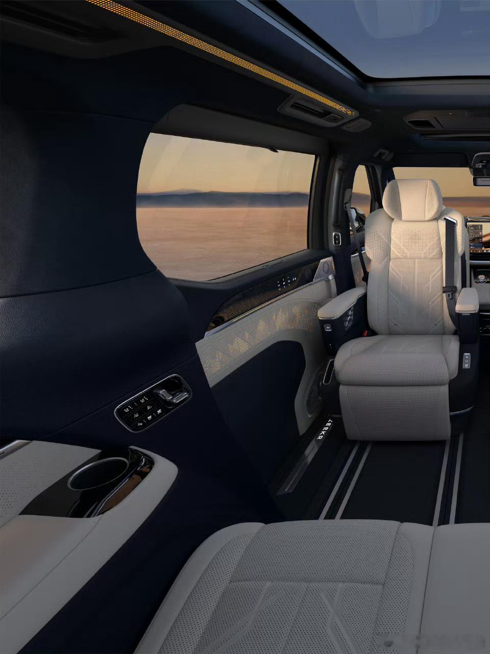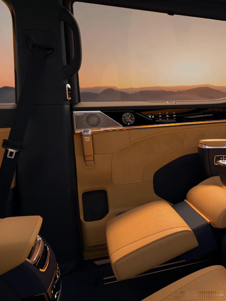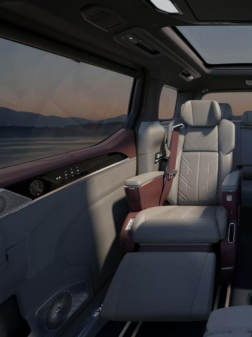 焕新极氪009来了毫无悬念了配了旋转座椅二排两把动态零重力二排右给了脚托,不知道
