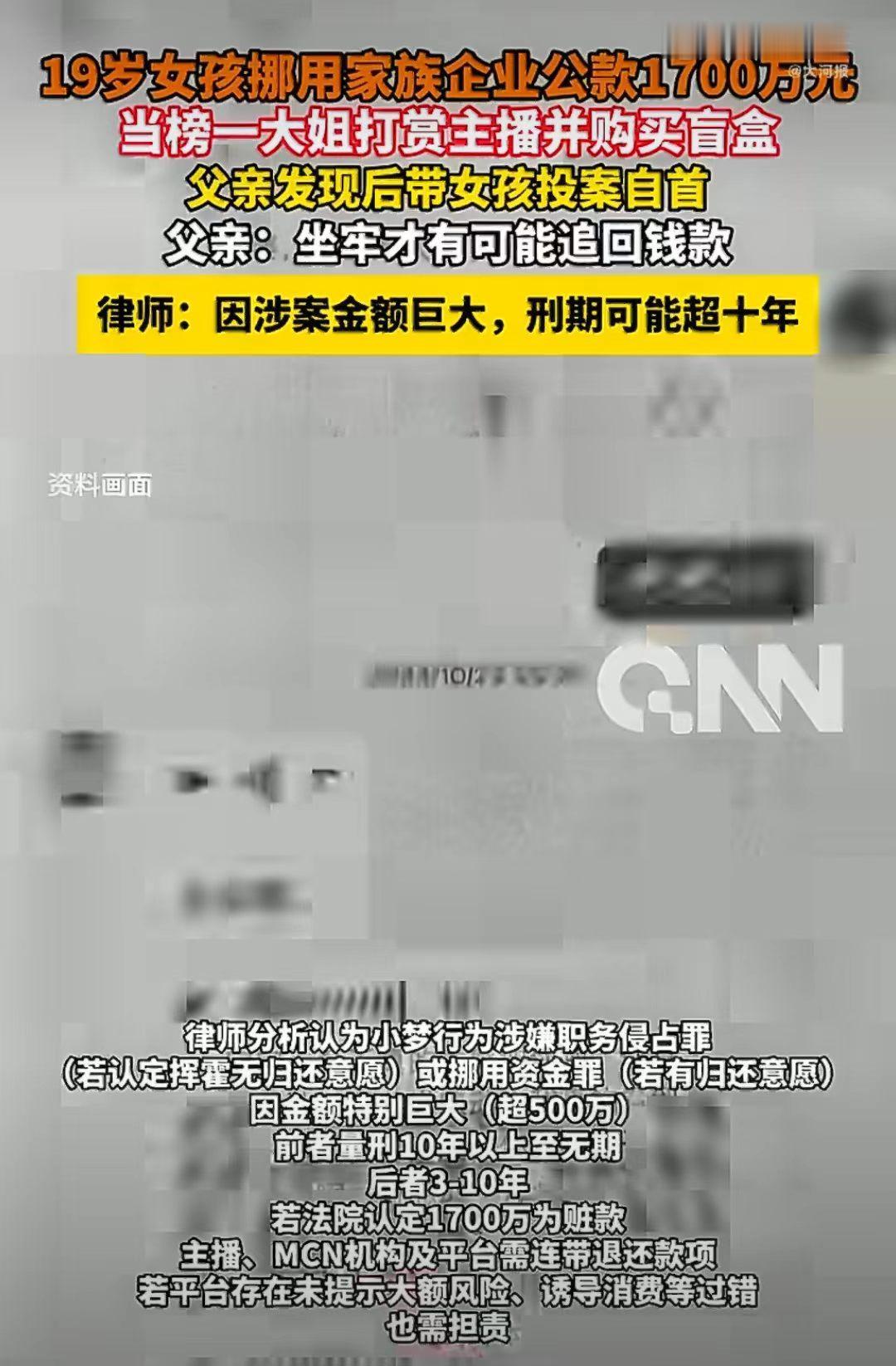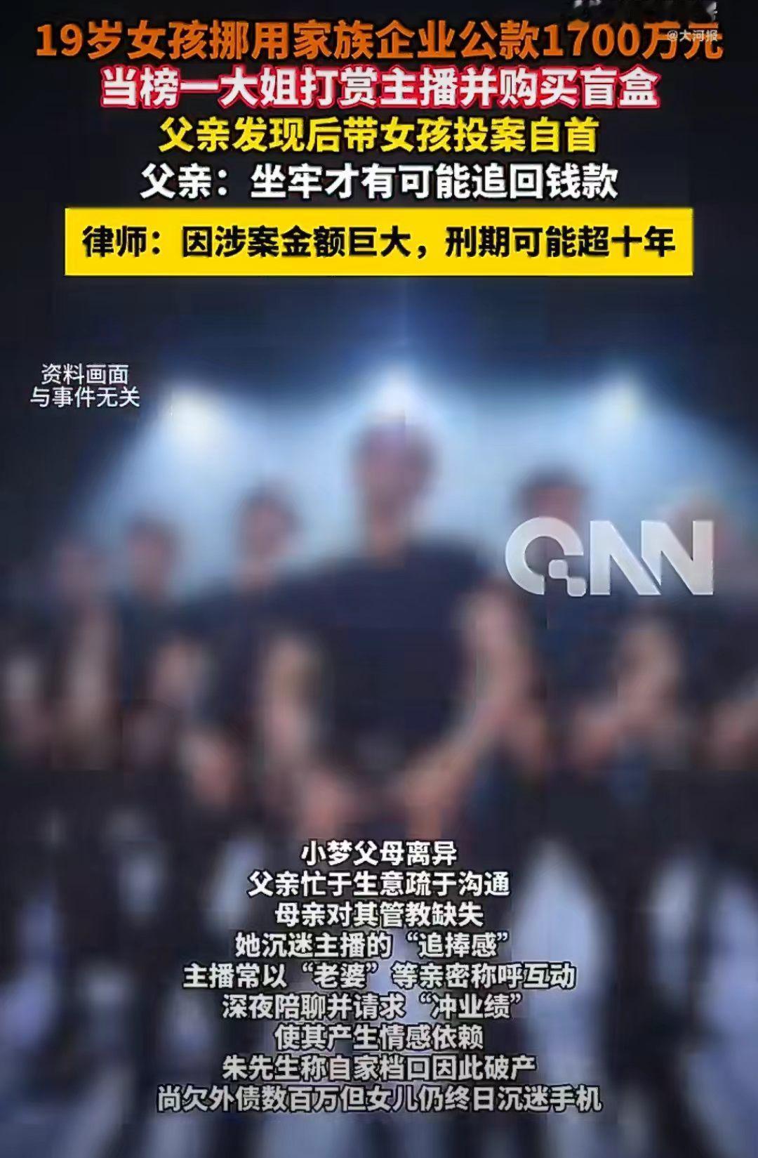 浙江19岁小梦迷上直播,在直播间被主播亲密的喊老婆,她觉得自己很有本事,为了帮助老公冲业绩,就把公司1700万公款打赏直播间帅哥了。