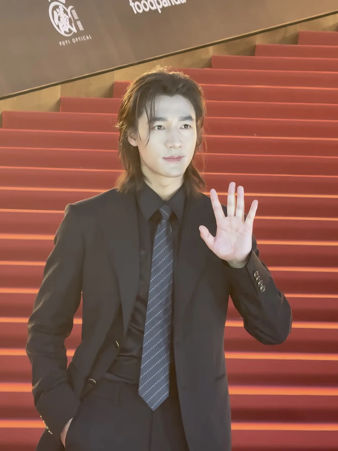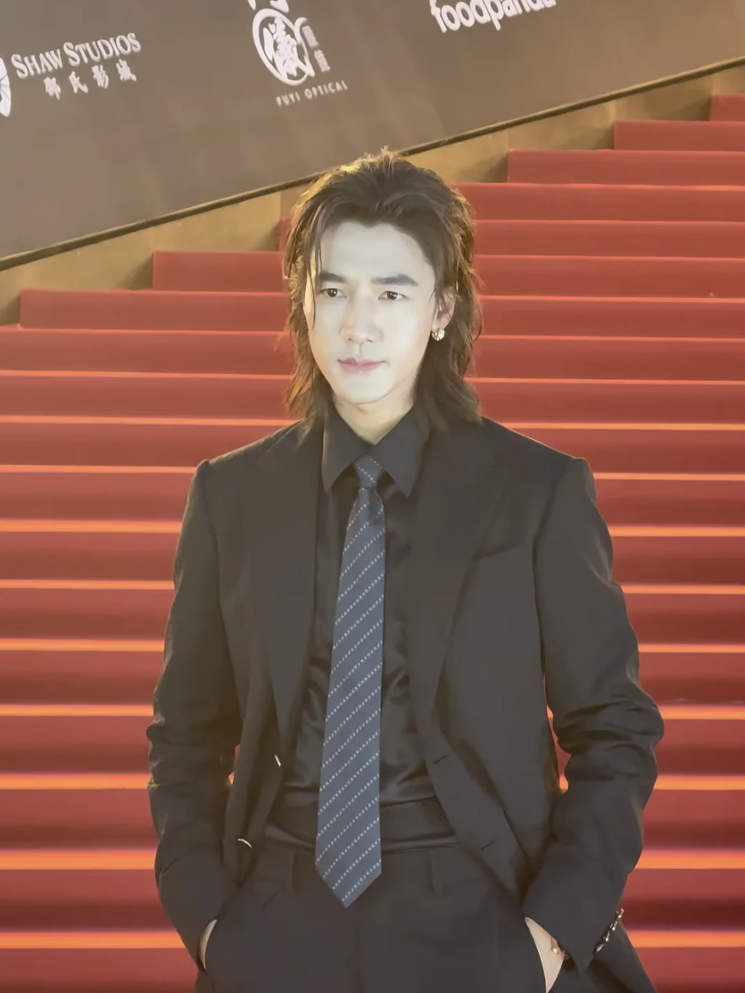 一身西装挺拔利落,帅气十足。