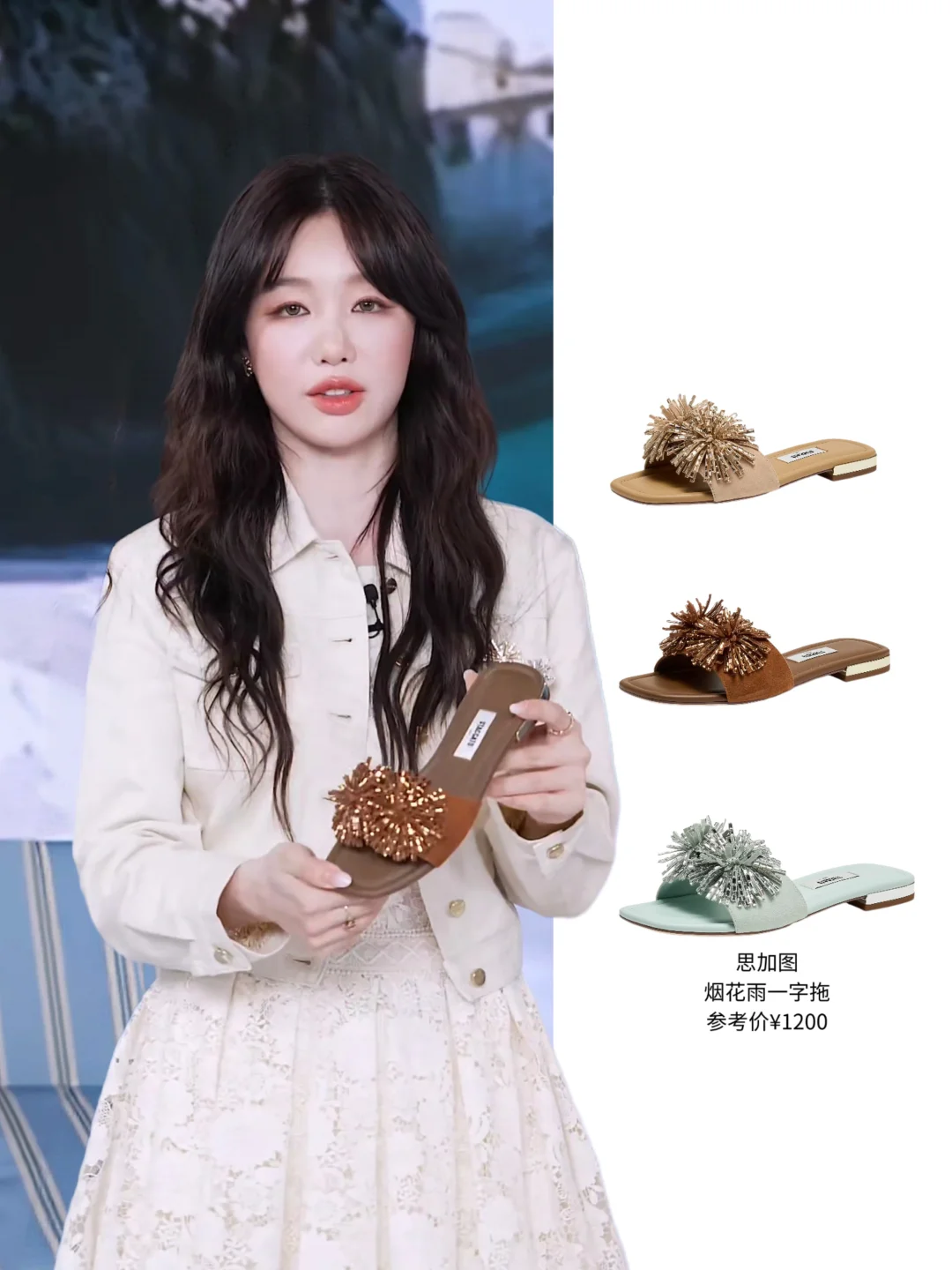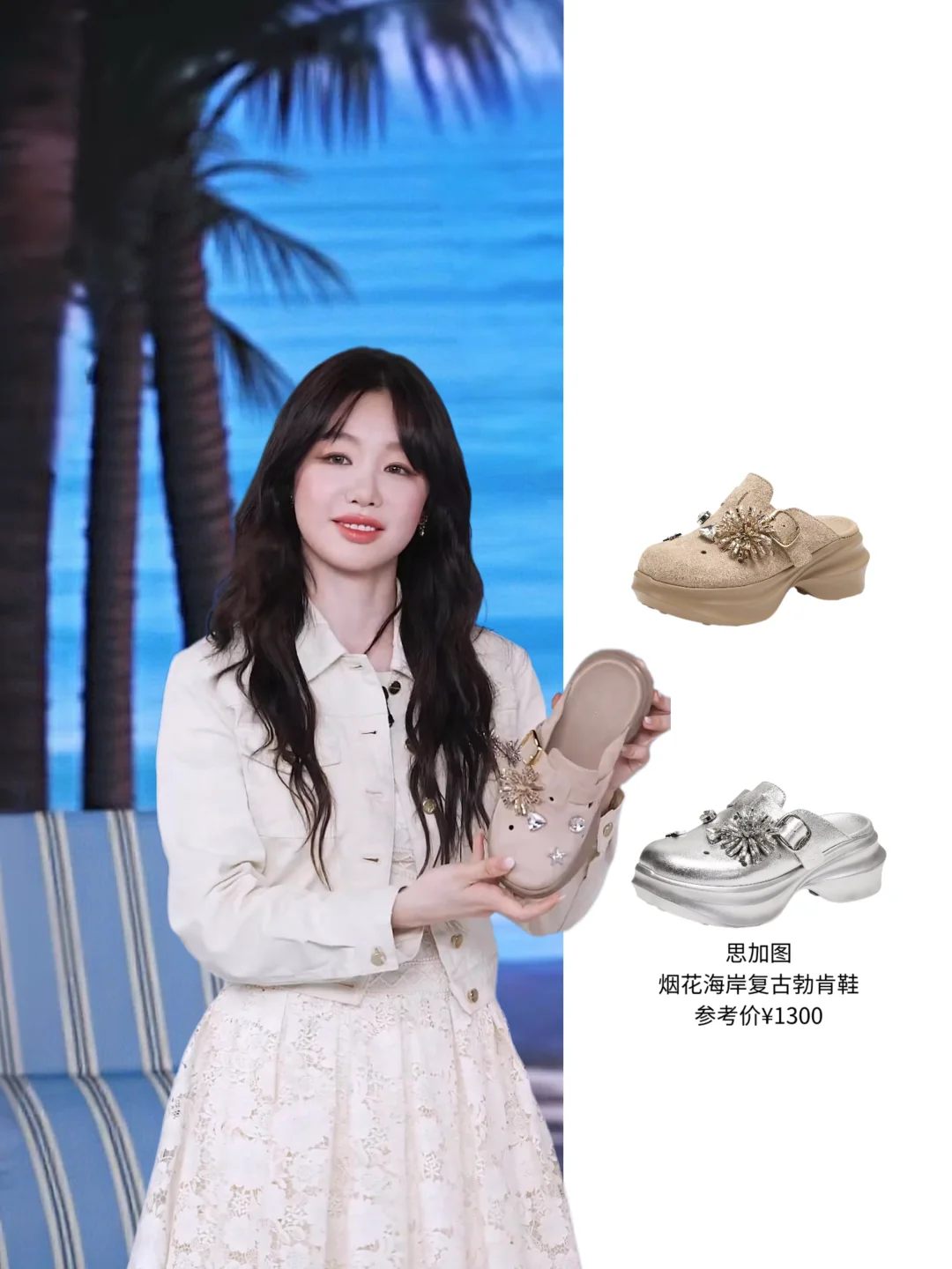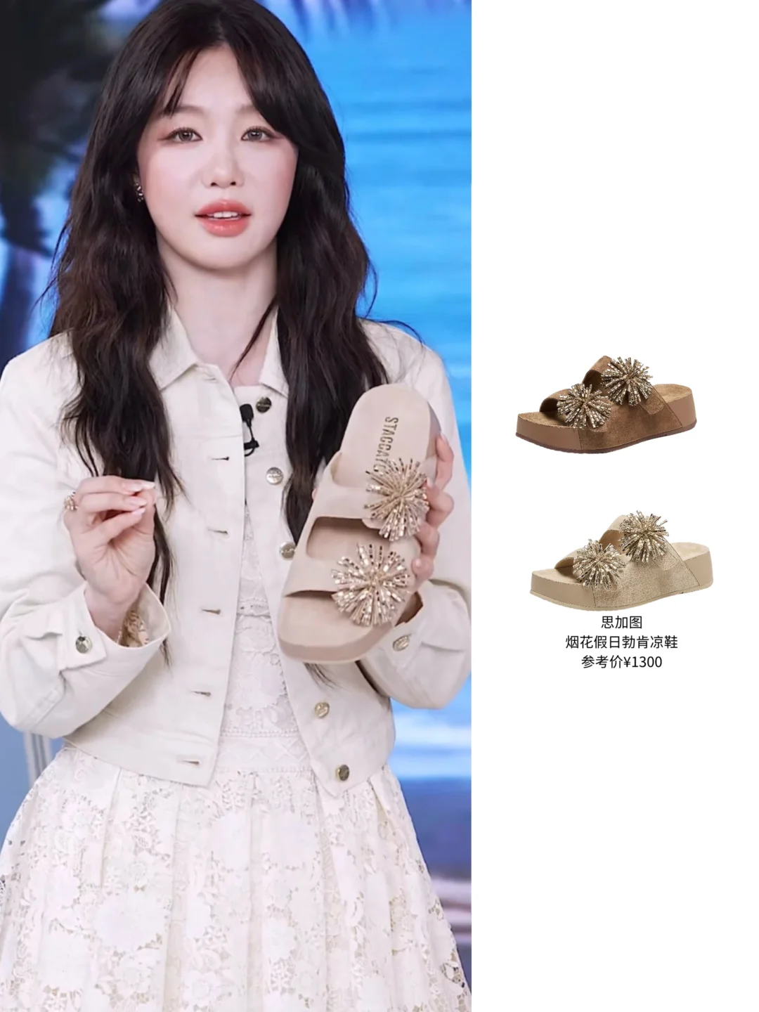 徐梦洁空降直播,又贡献出两套甜妹穿搭,白色蕾丝裙搭配牛仔小夹克,脚踩烟花假日勃肯鞋,真是甜美又松弛!