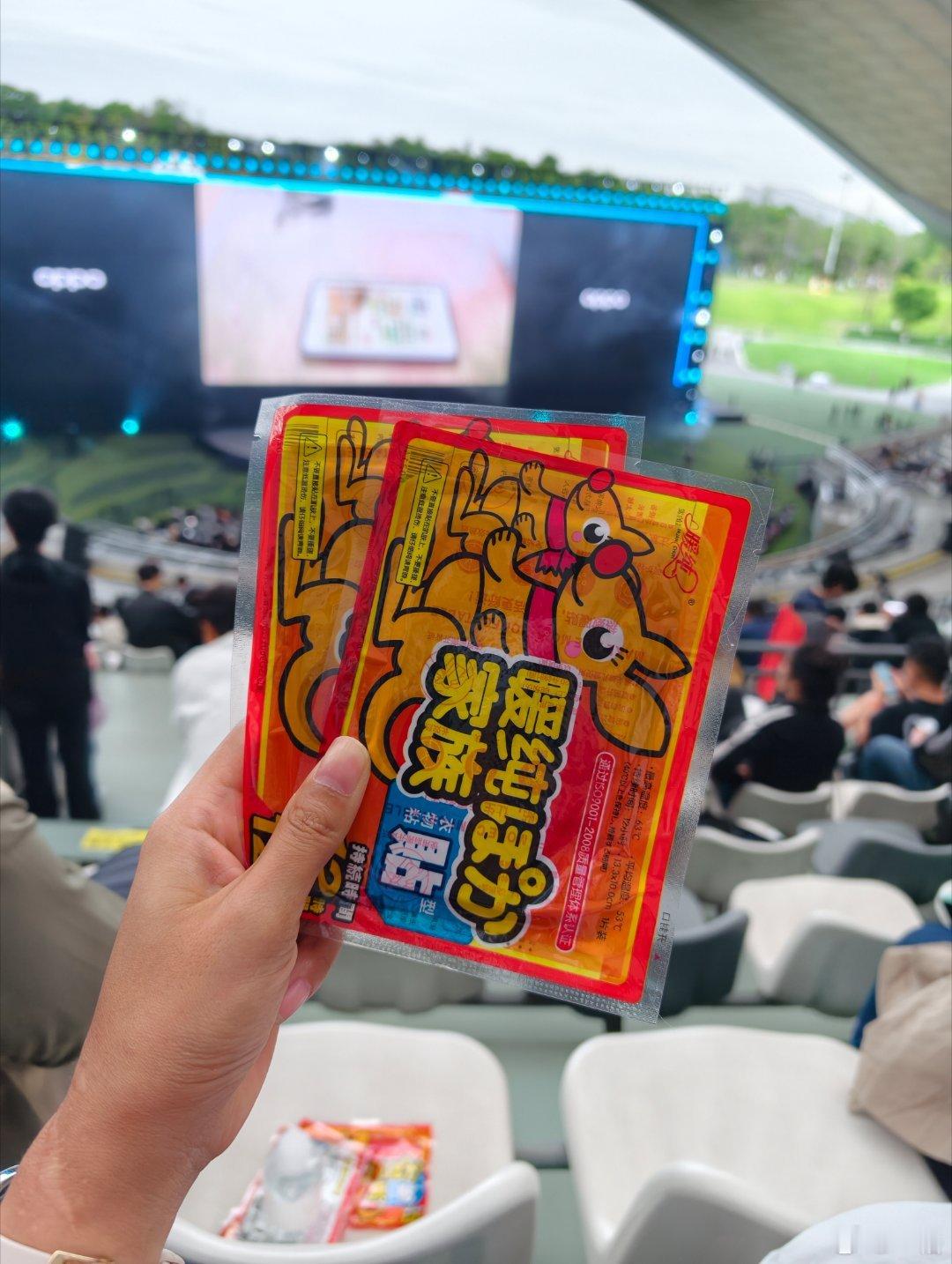 来了,今天发布会在室外,成都晚上很冷吗?还专门给大家准备了加热贴
