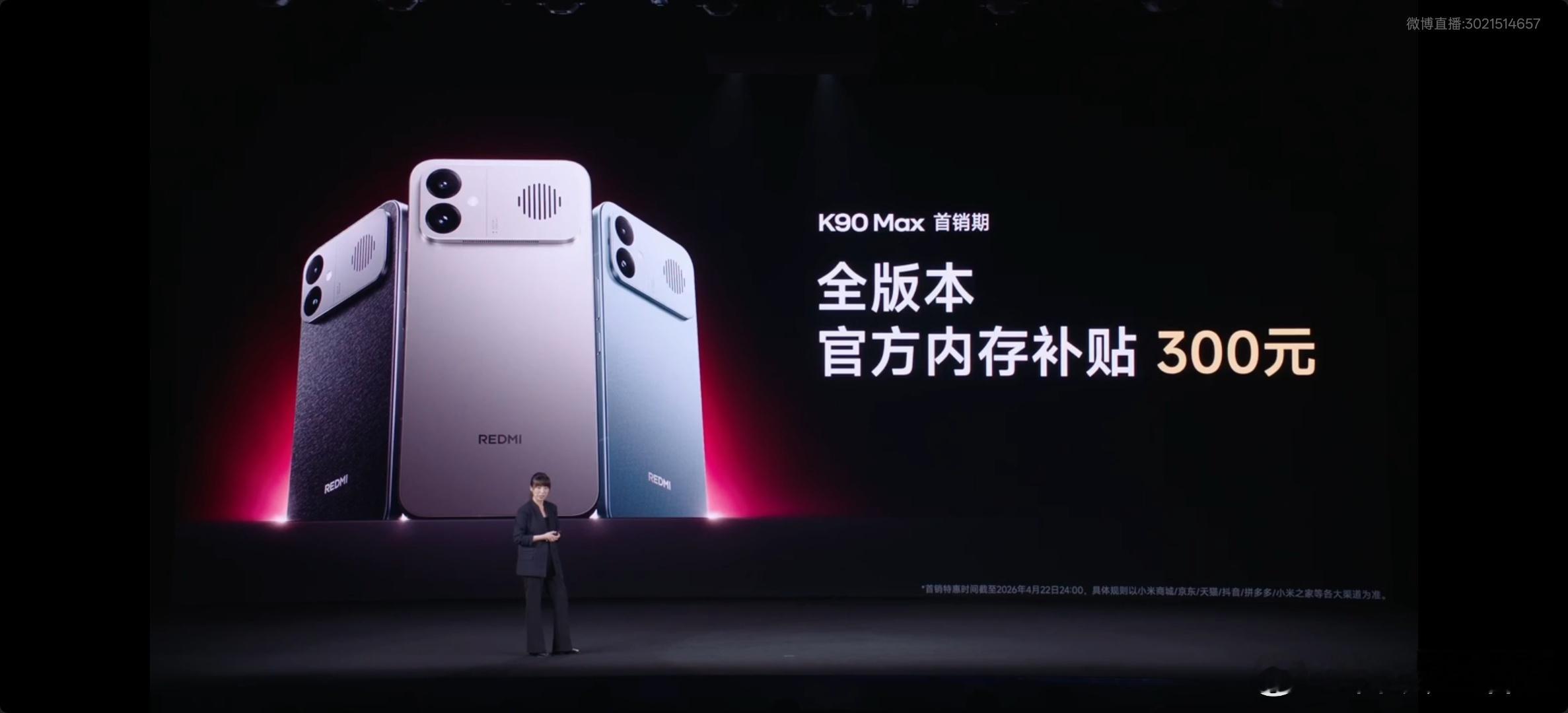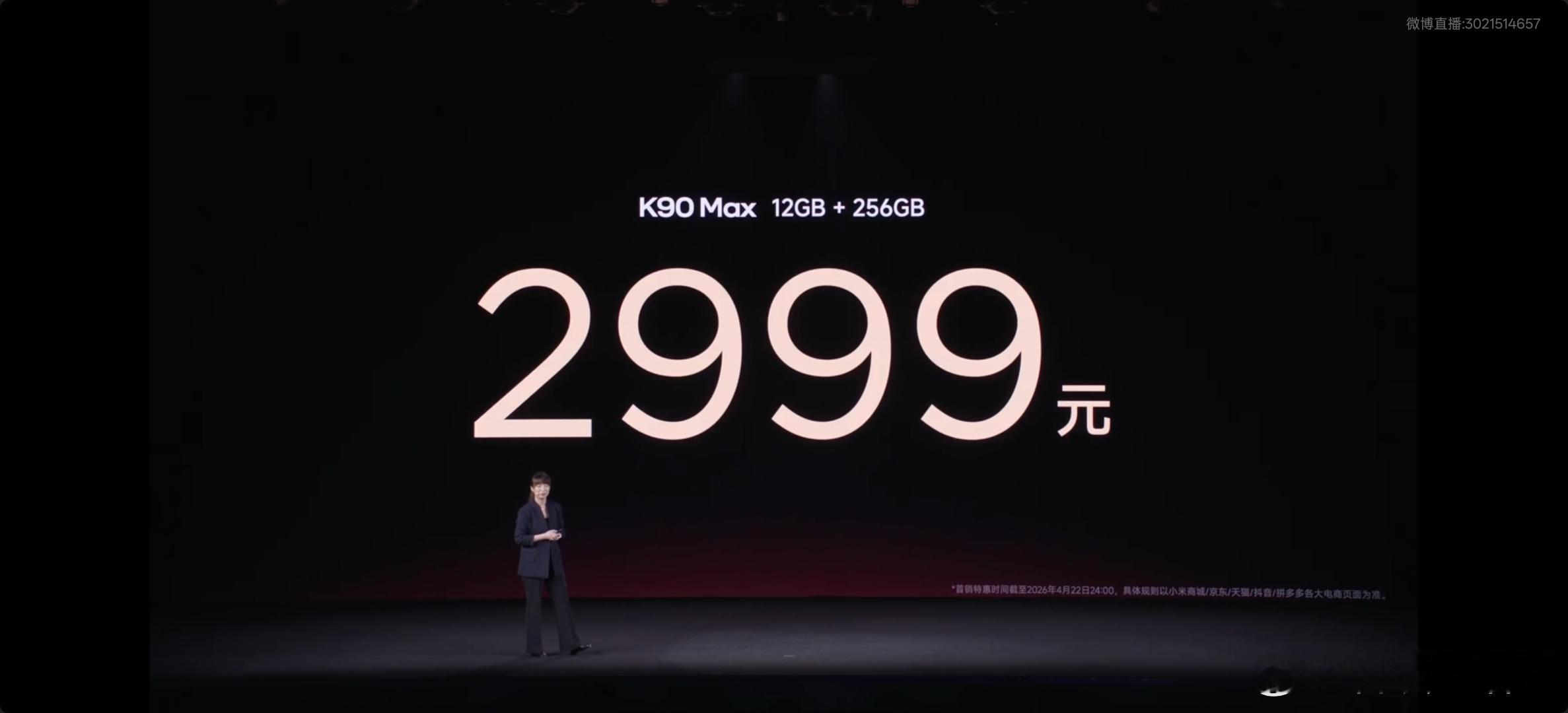 游戏党们期待已久的性能旗舰终于来了!4月21日REDMI K90 Max正式登场,2999元起的价格让人直呼真香。其搭载天玑9500旗舰平台和电竞独显芯片,专为重度玩家打造,让性能得到彻底释放。针对打游戏发烫发热的问题,产品配备了行业最强风冷散热,实测100秒降10℃,将优质的使用体验拉满。165Hz高刷屏实现舒适的视觉体验和丝滑流畅的操作,BOSE双扬提升氛围感和沉浸感,这波必须冲!红米K90Max发布会K90Max价格
