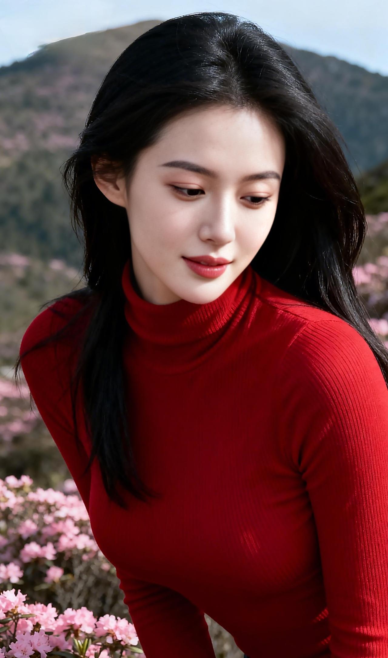 春日山野间,红衣胜花,不刻意张扬,却在光影交错间,将东方女子的柔与韵,定格成一幅动人的画。