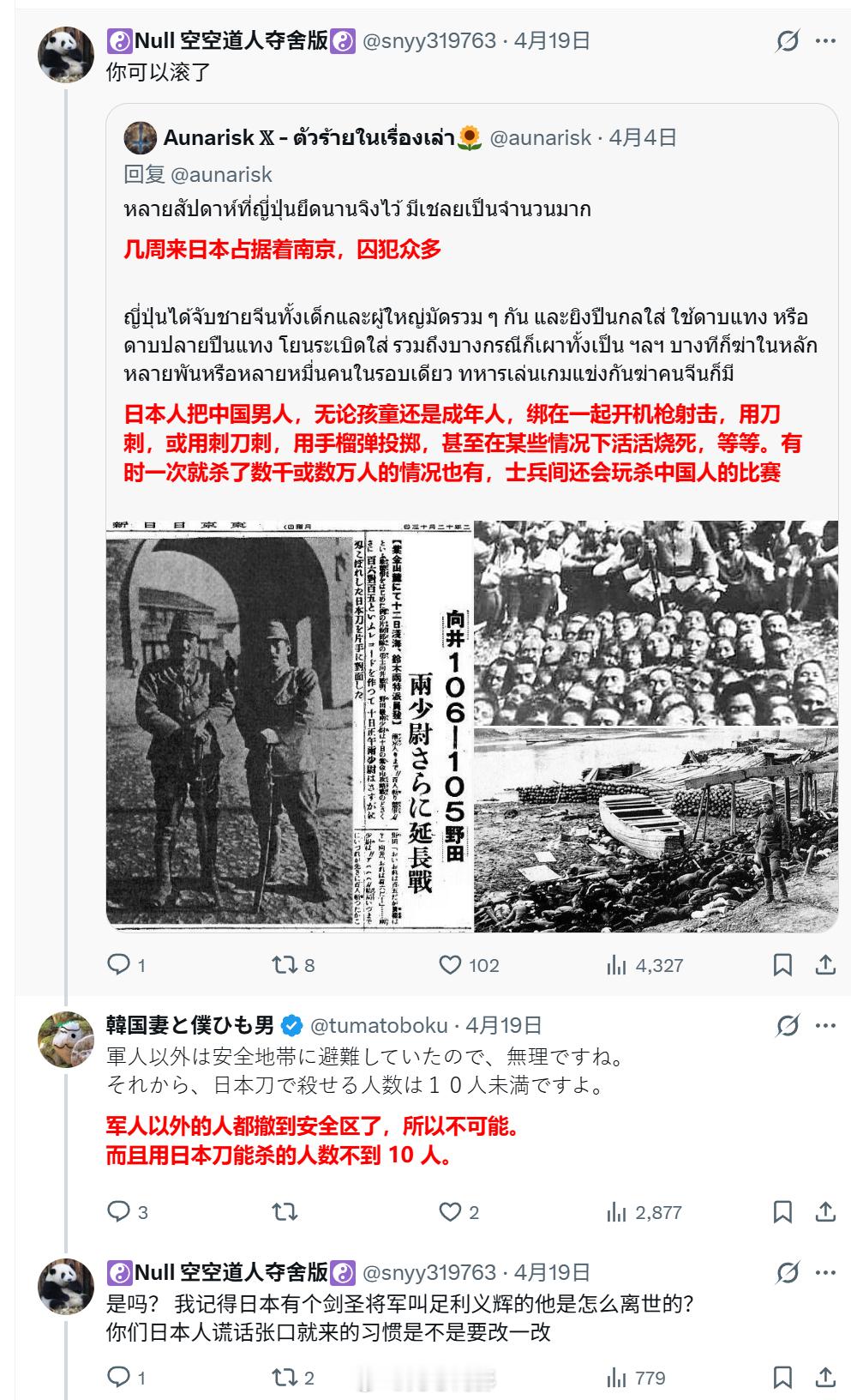 在推特将日文内容自动翻译给全世界的背景下,一名日本人坚决否认发生过南京大屠杀,嘴