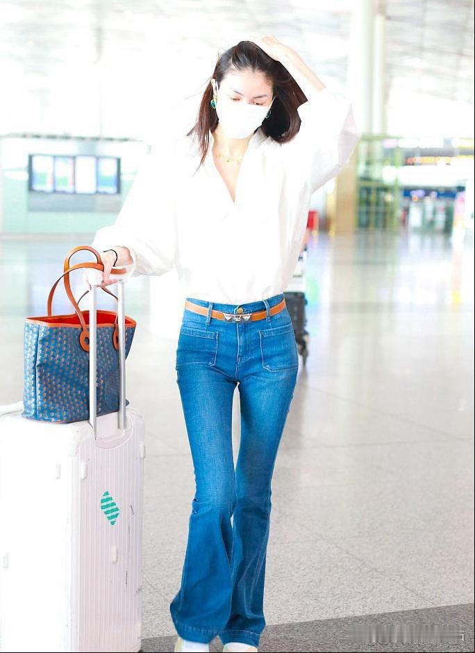 何穗的超模气质真的无可替代!泡泡袖上衣搭配喇叭裤,简约又洋气,高级感直接拉满!