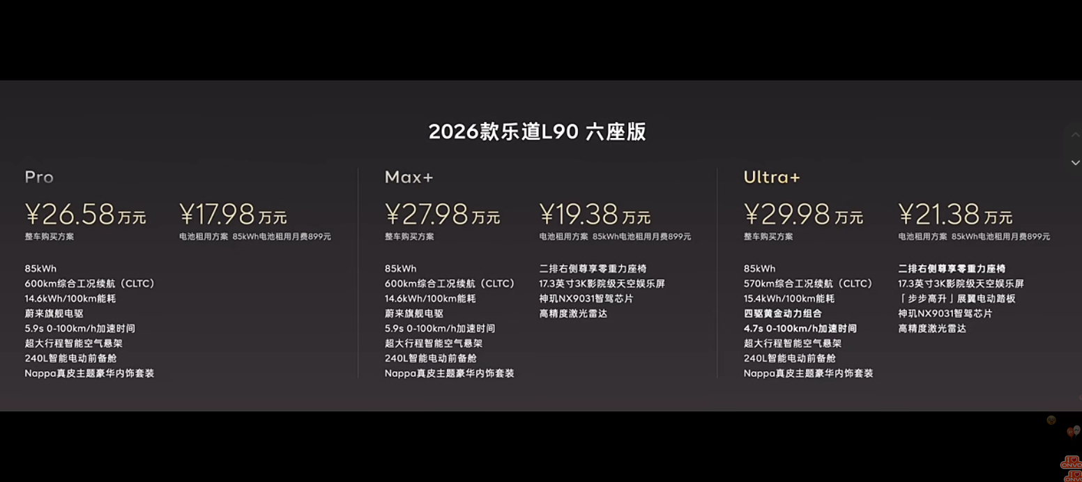 26款乐道L90售价来啦,BaaS17.98万起,整购26.58万起,总结就是加