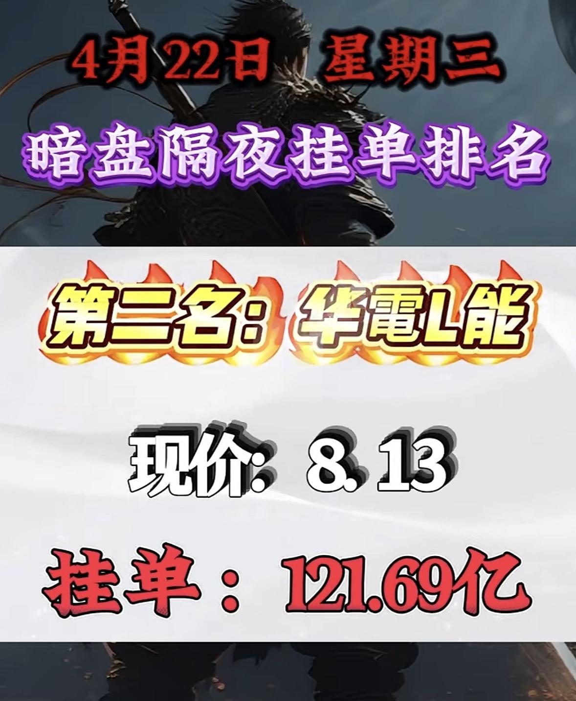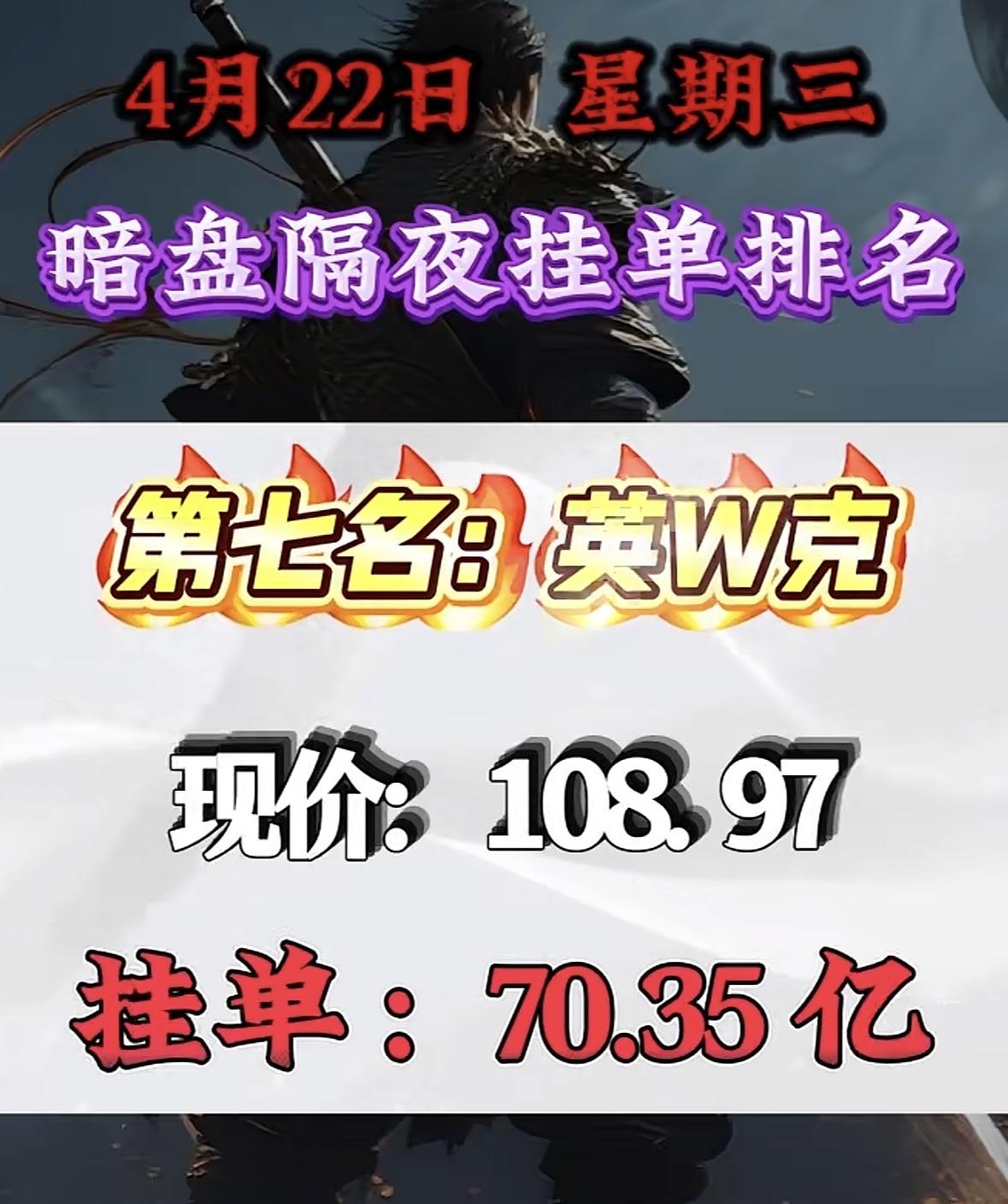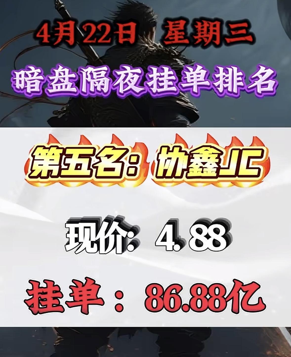 4月22日周三暗盘隔夜挂单排行榜揭晓