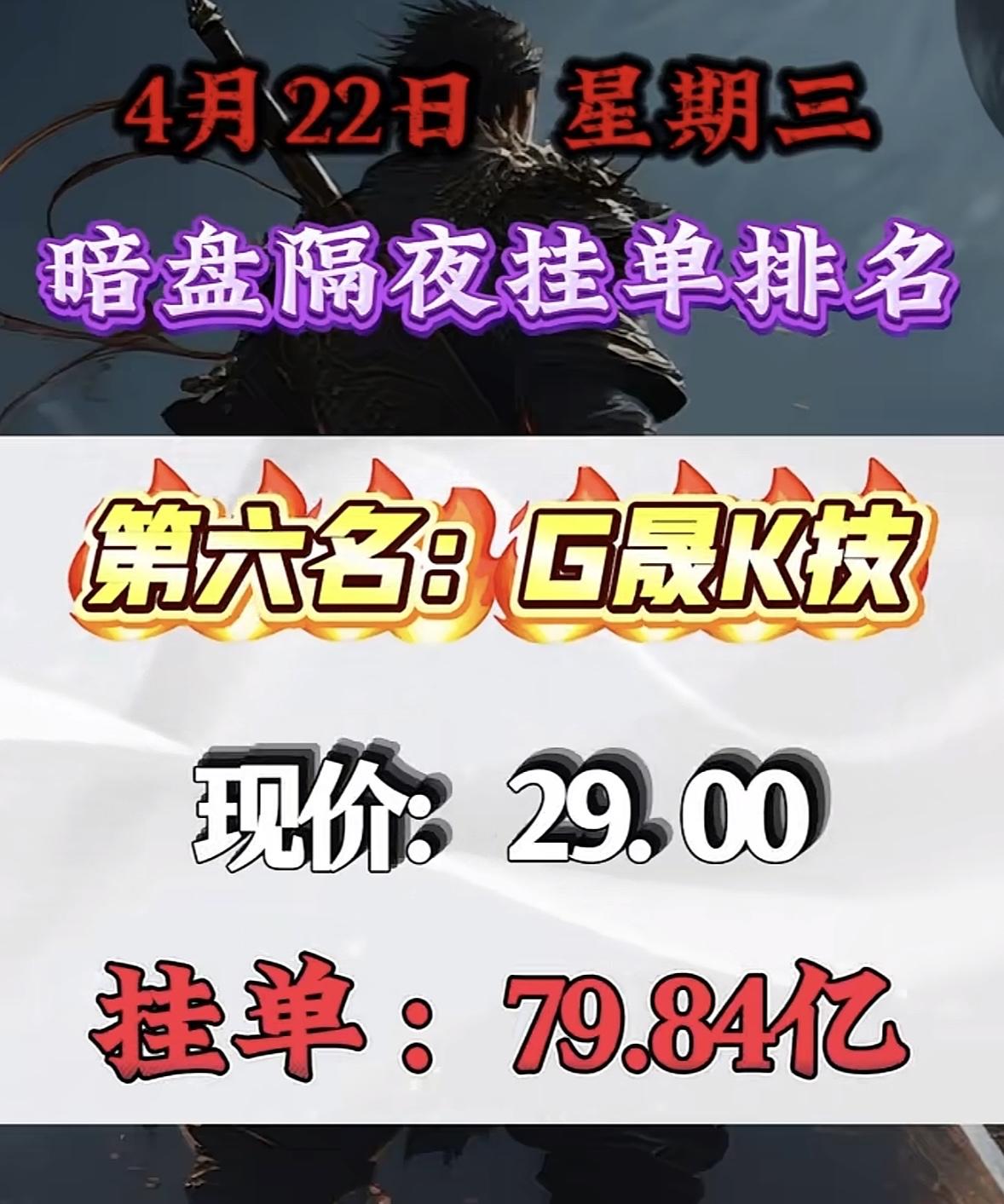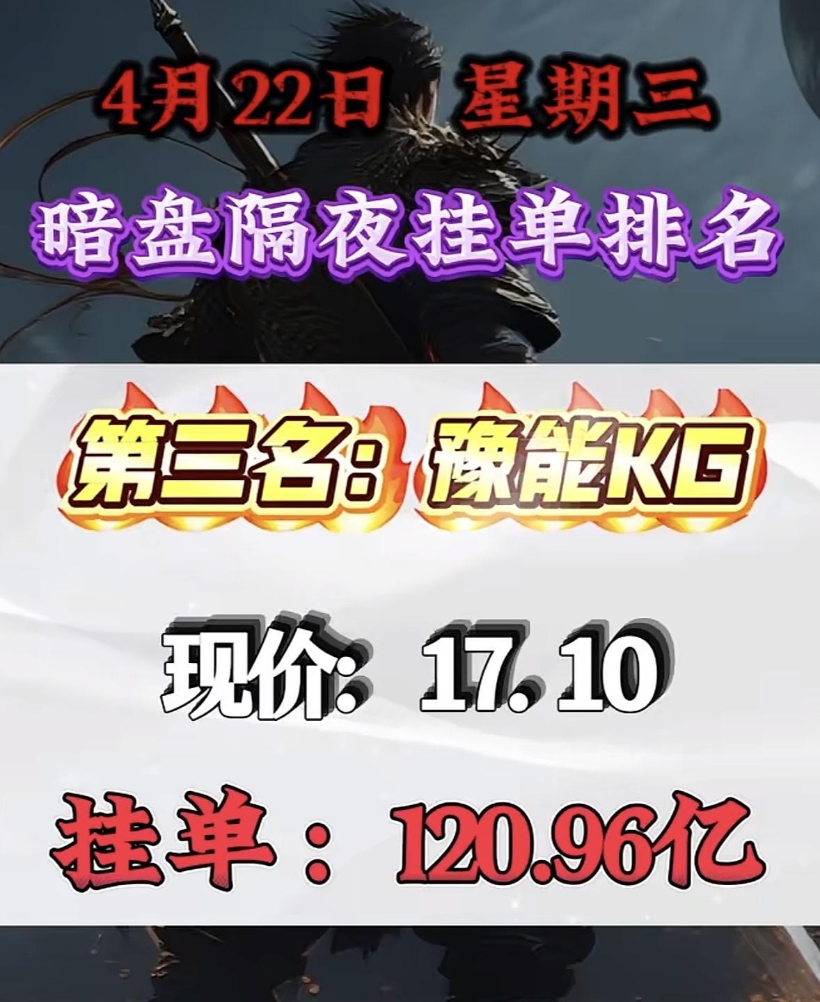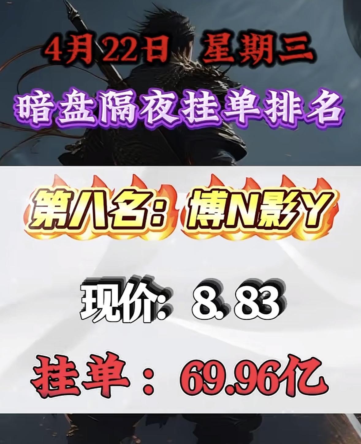 4月22日周三暗盘隔夜挂单排行榜揭晓