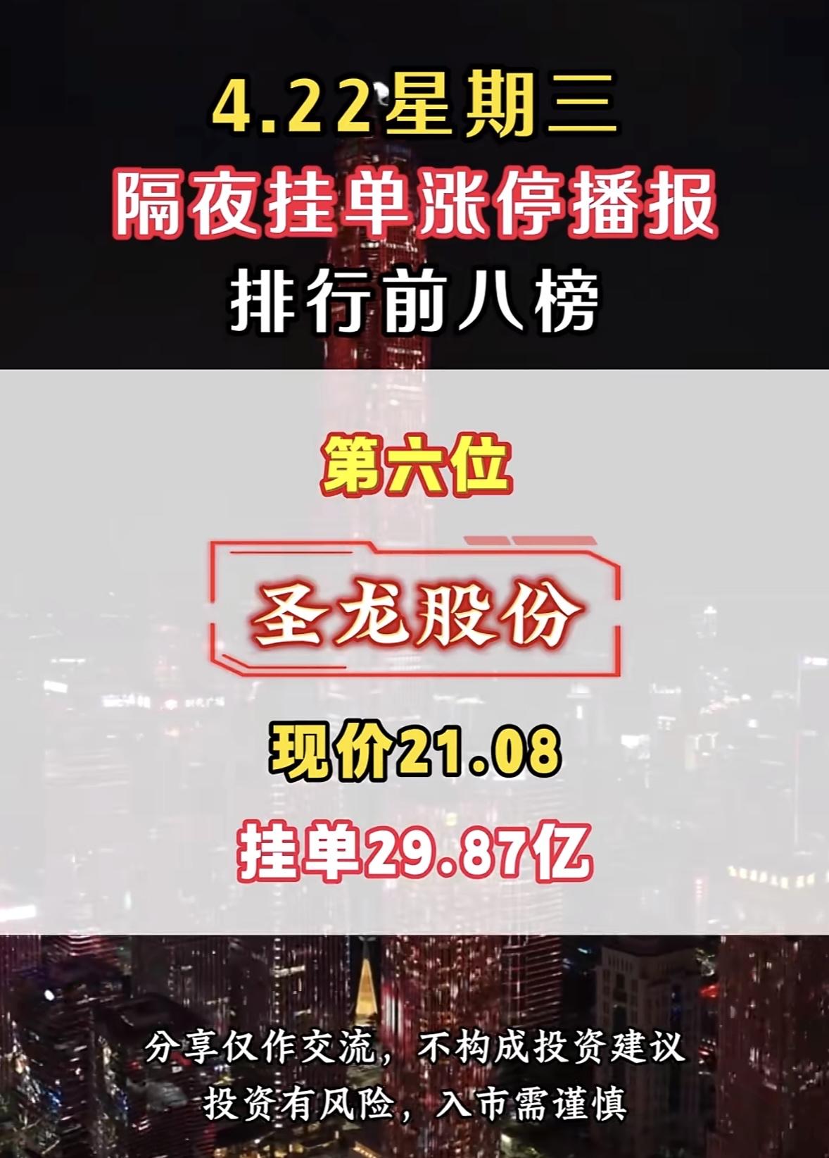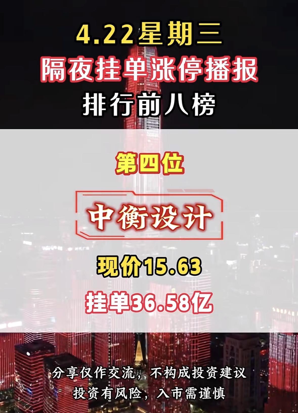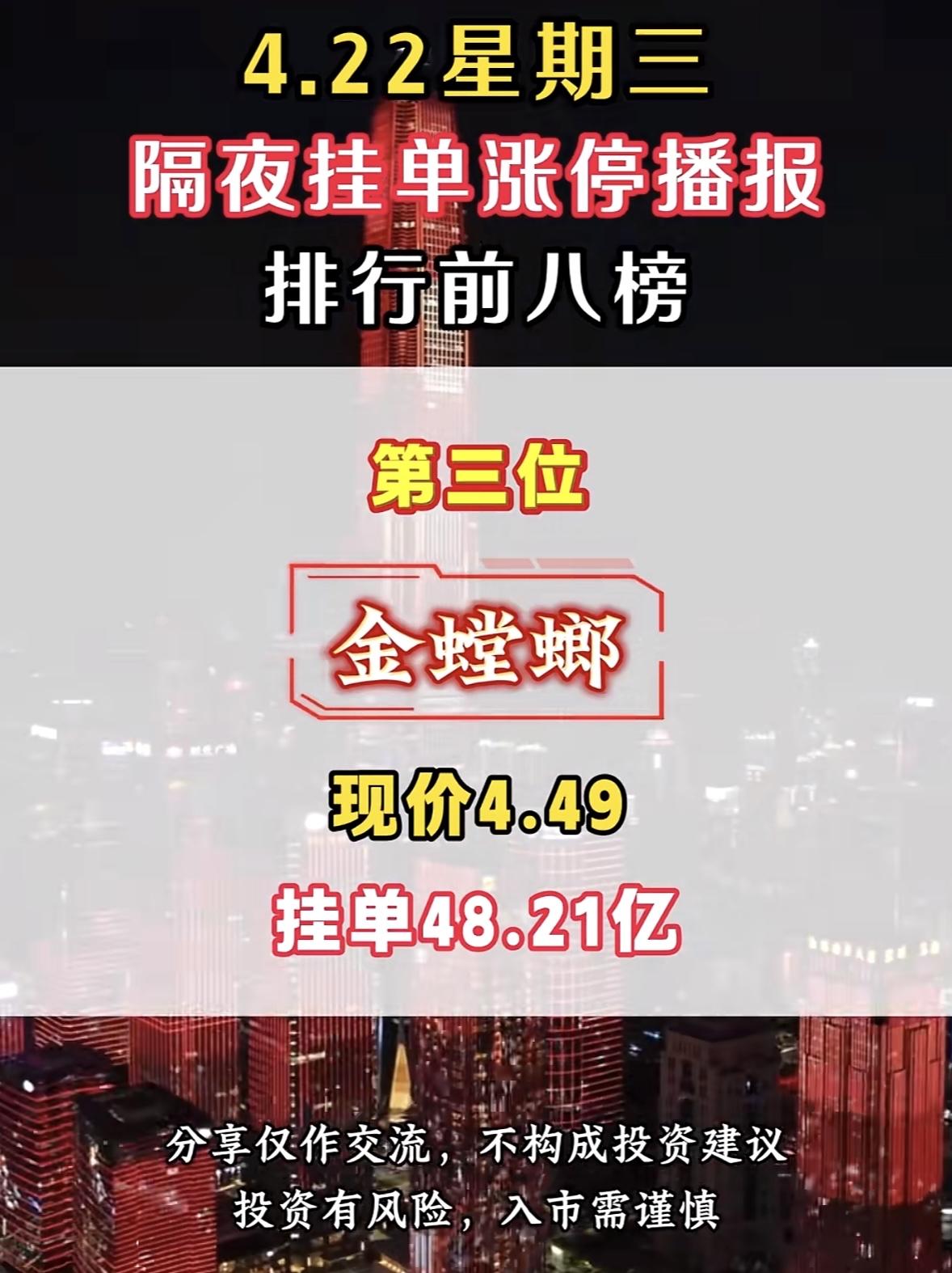 4月22日周三暗盘隔夜挂单排行榜揭晓