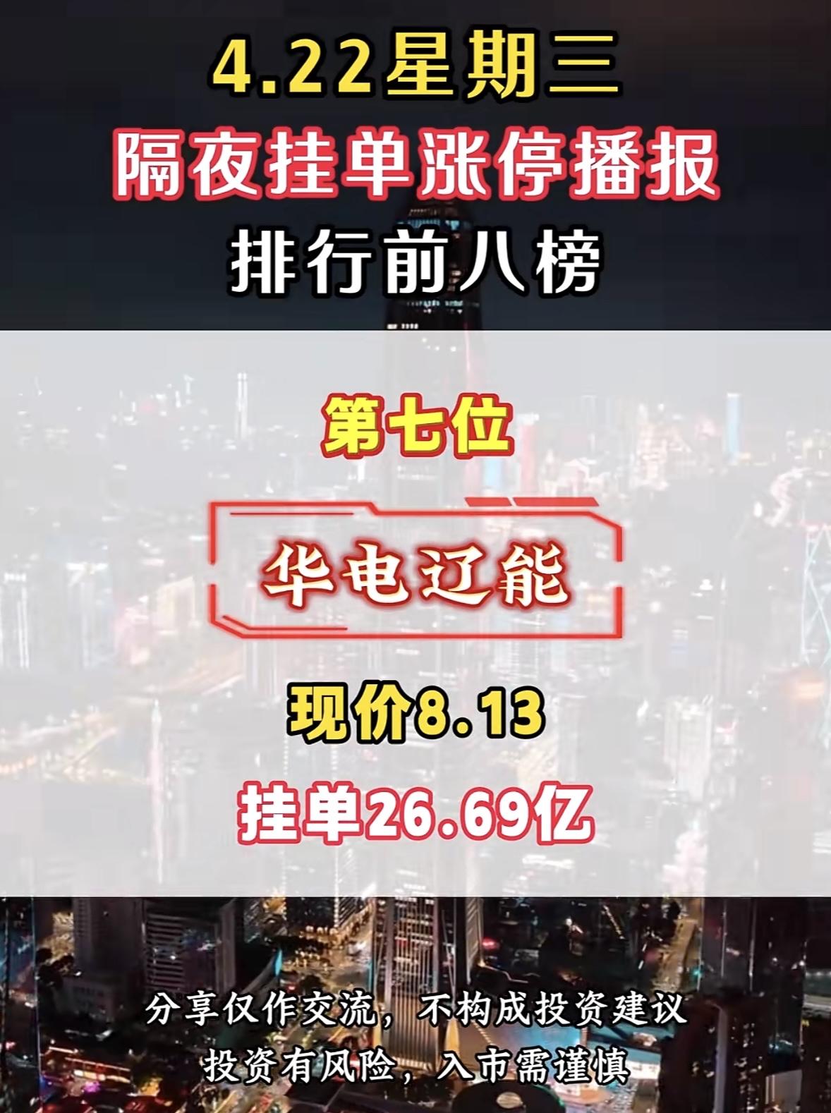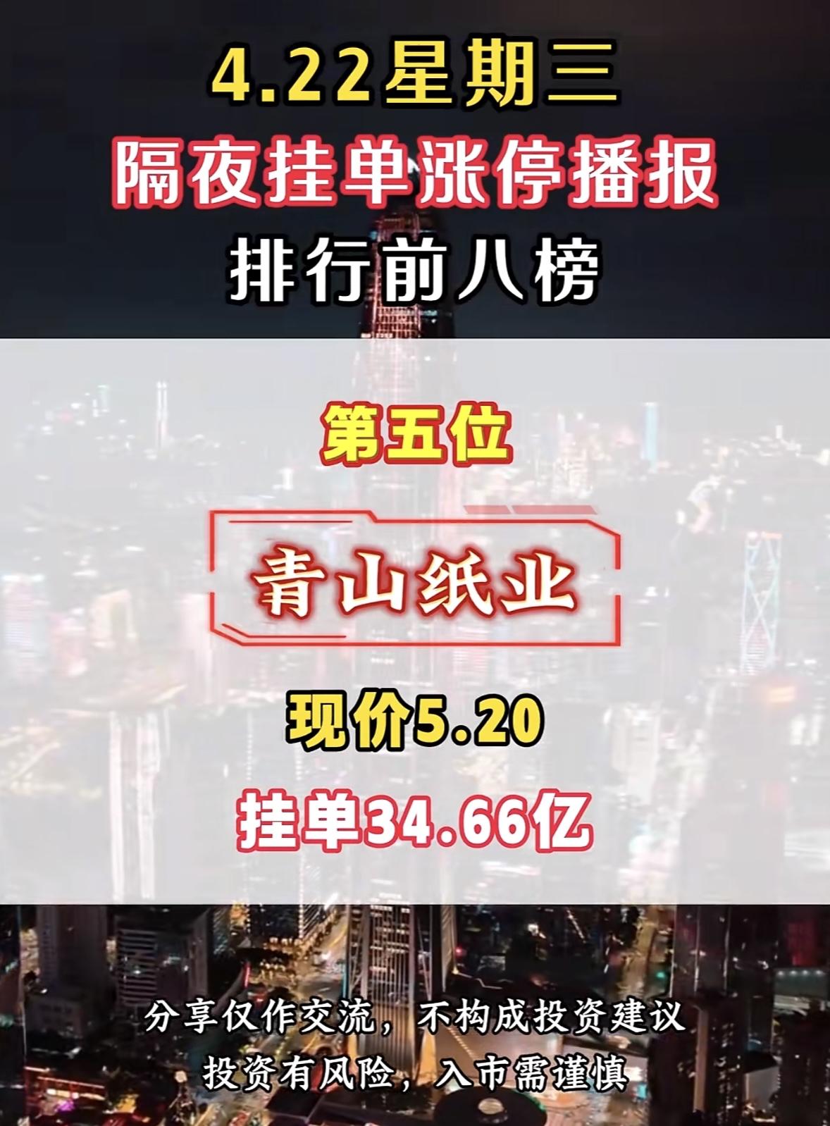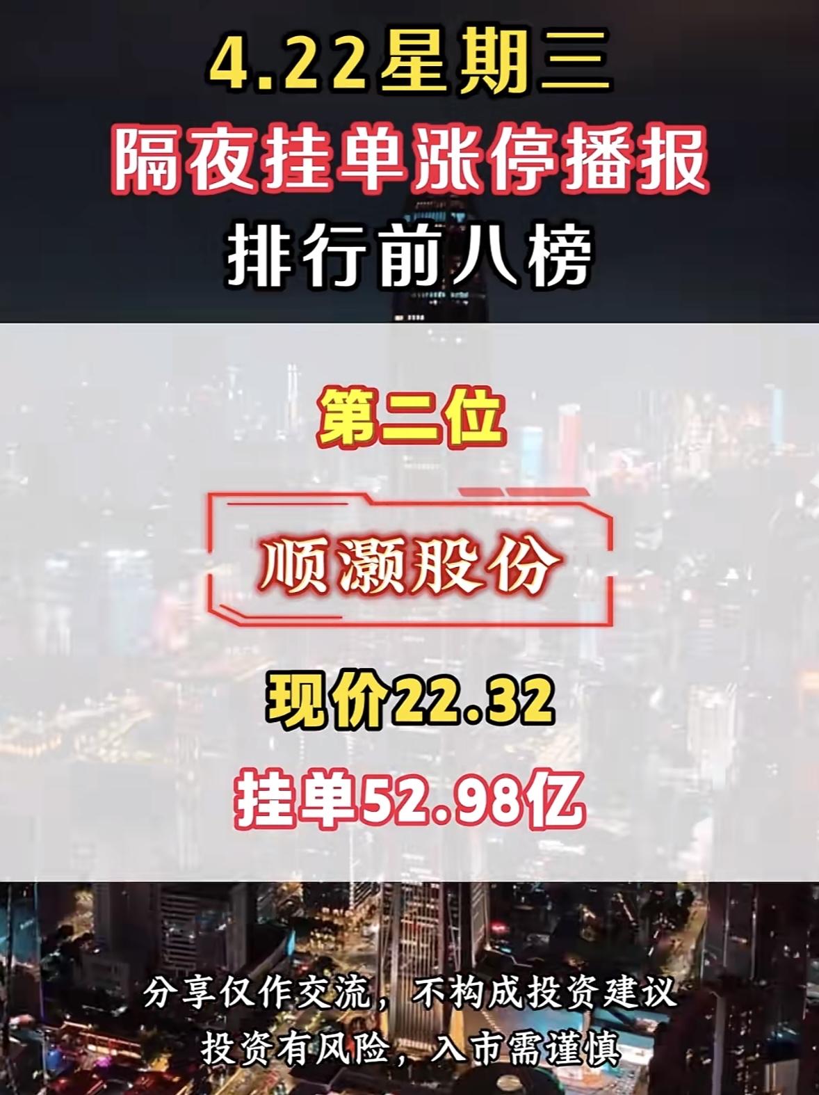 4月22日周三暗盘隔夜挂单排行榜揭晓