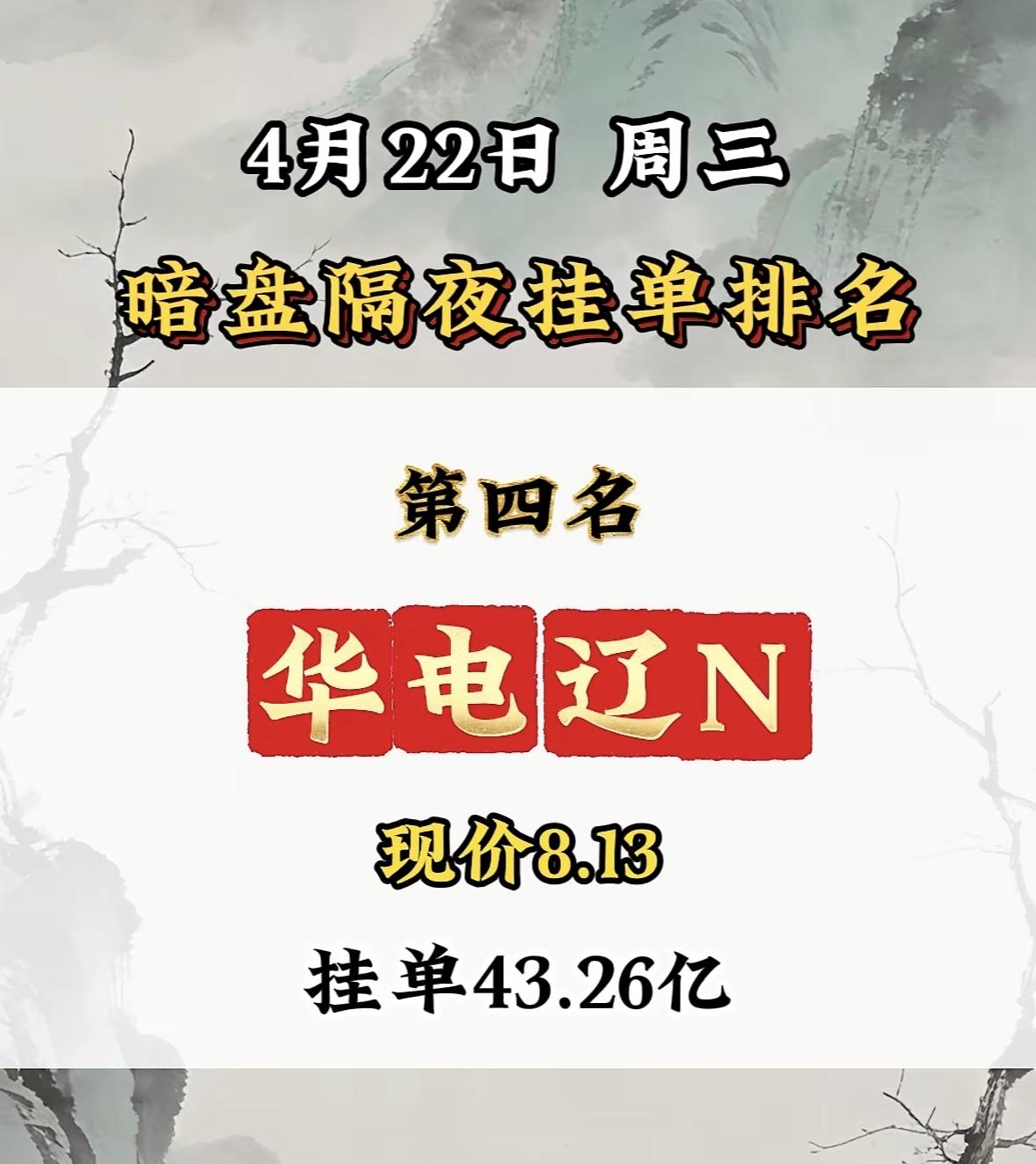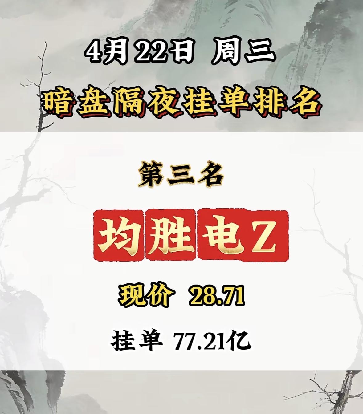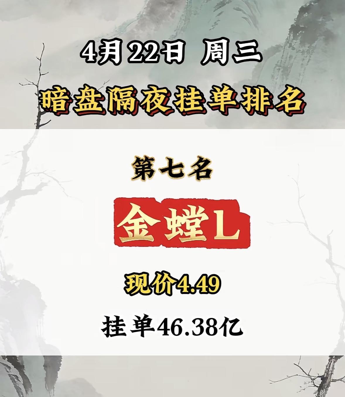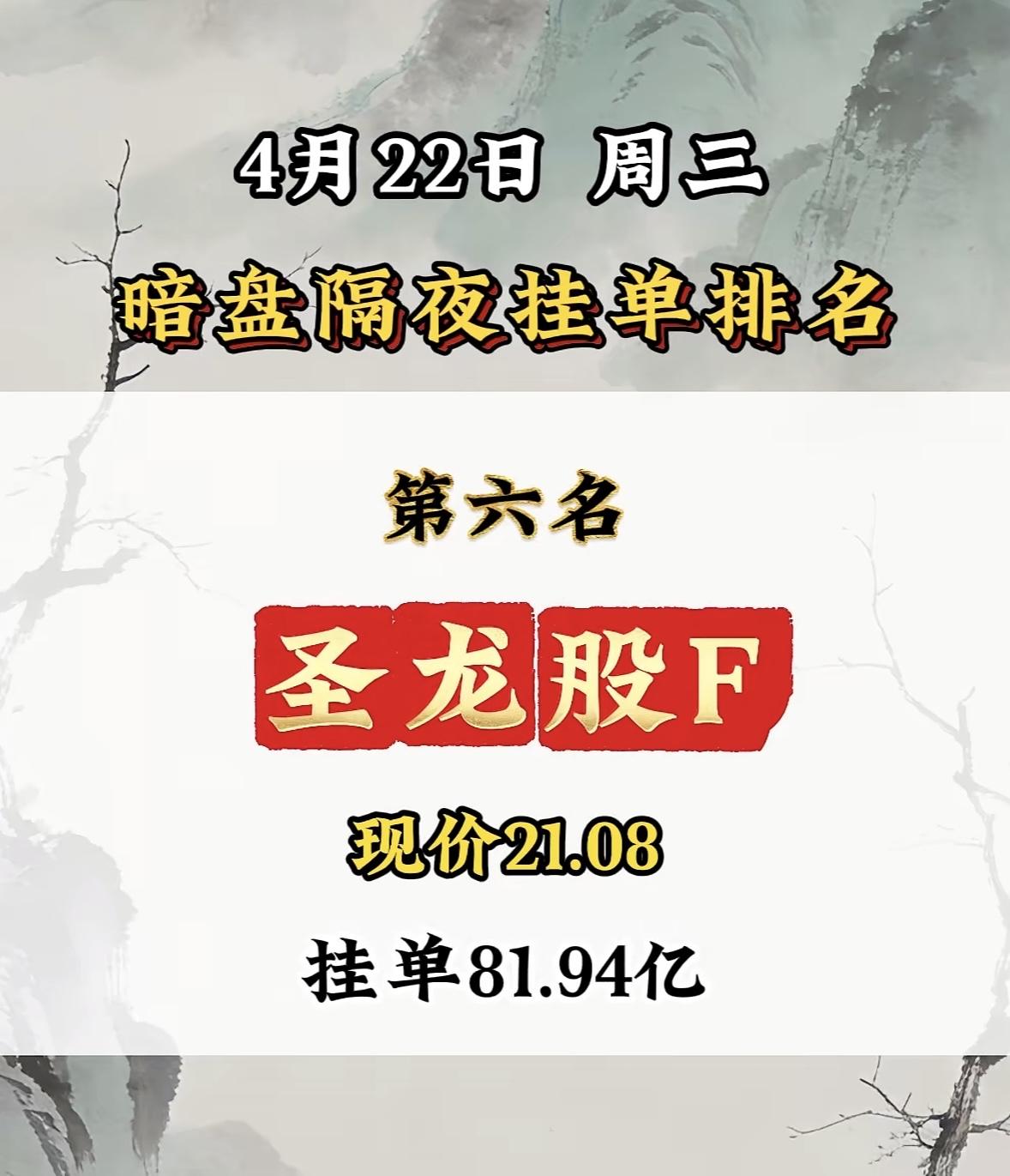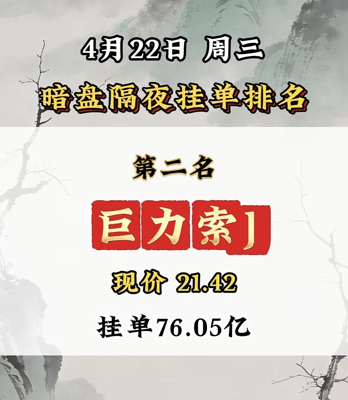 4月22日周三暗盘隔夜挂单排行榜揭晓