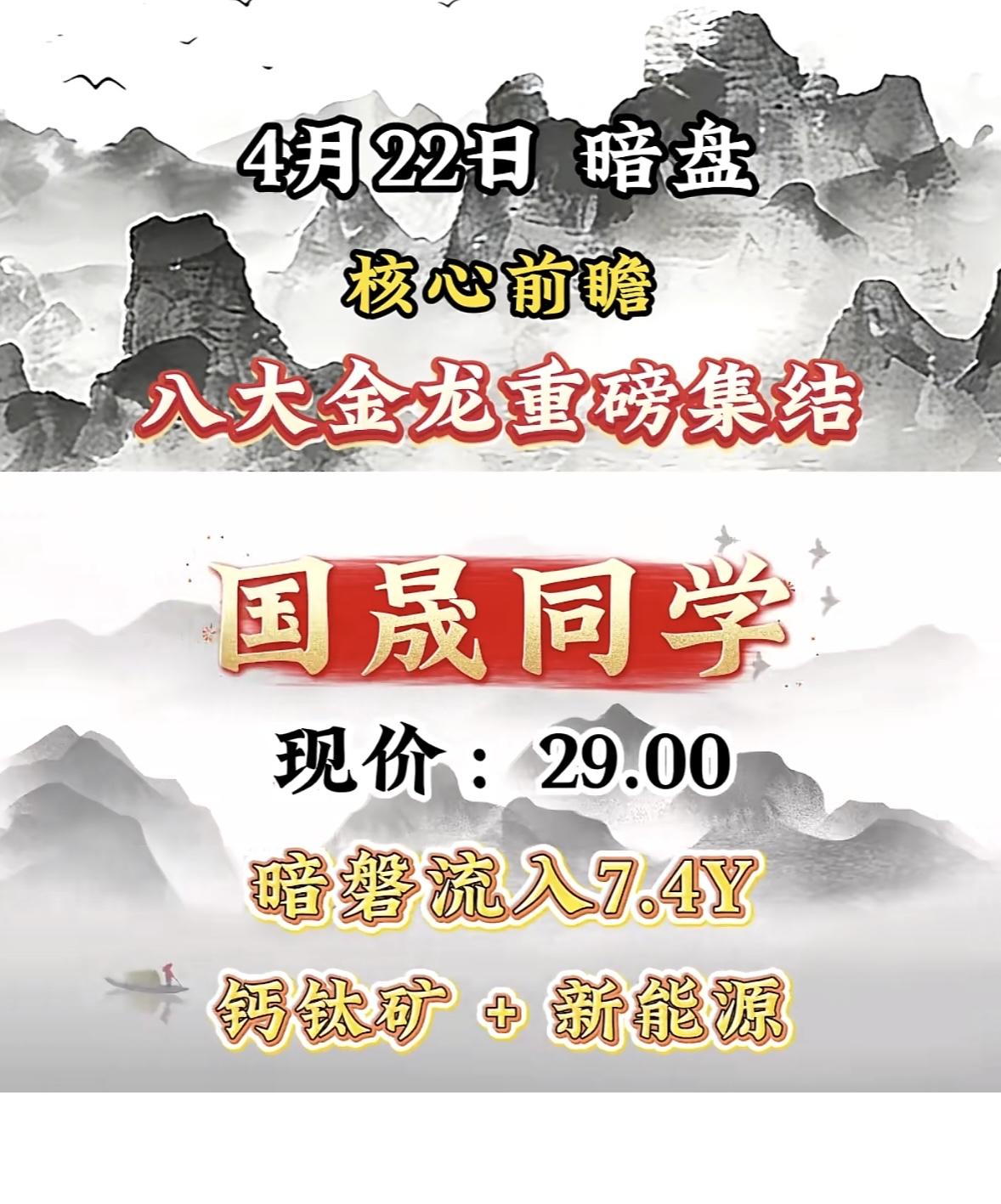 4月22日暗盘,国晟科技现价29.00,说是核心前瞻八大金龙重磅集结,这可太让人期待了。此前国晟科技的表现就很有看头。比如之前有一天,它冲高回落,盘中最高触及23.76元,最低下探至20.99元,全天振幅高达12.86%。最后收出带长上影线的阳线,有人觉得这可能预示上方压力大,短期或回调。还有一次,A股市场整体疲弱,光伏板块受挫,国晟科技却逆市涨停,收盘价25.30元,突破所有短期均线压制,多方力量主导。这次暗盘的表现,不知道后续会怎样,是延续强势还是另有变数,值得持续关注。